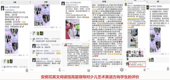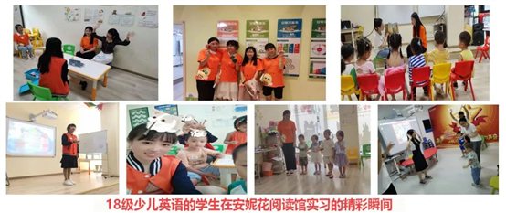2018级少儿艺术英语教育方向毕业生盛一平、许文霞、吕静怡、张佳汝、周旸天和王丽这六名同学,在安妮花阅读馆担任主课或助教老师,业务能力强,工作认真负责,获得安妮花阅读馆馆长、教学总督导及单位指导老师Emily的高度评价!我方向毕业生的少儿英语教学能力强、有责任心和爱心,受到小朋友和家长们的一致认可!