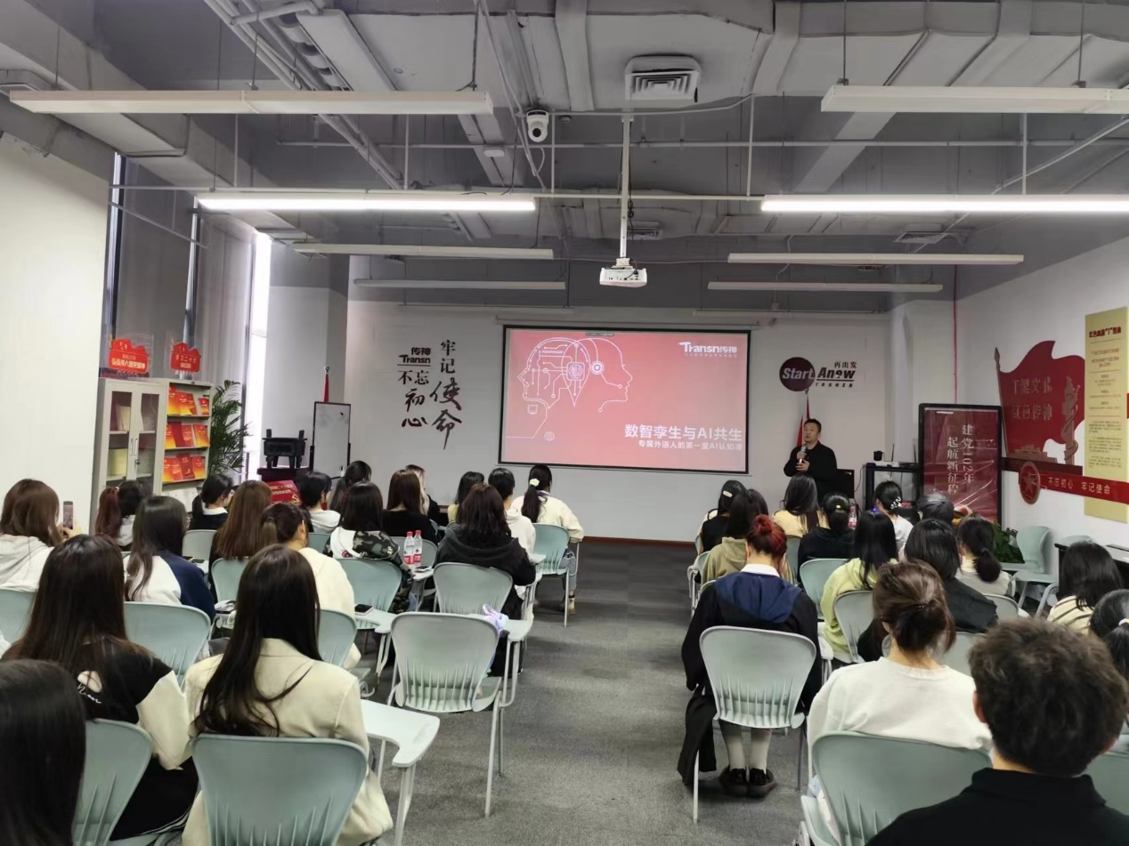 最后,员工们来到三楼的未来空间创新基地,在基地里拍照打卡,观摩基地环境。在党员活动空间里,员工们参加了靳伟总监的讲座。靳伟总监讲述了2024 数智孪生与 AI共生- 专属外语人的第一堂AI课。这门课上员工们进一步了解到AI智能,以及AI智能在生活中的应用和对日常生活的影响。通过该讲座的学习,员工们能基本明确该如何更好使用AI为学习创造条件,从而对英语学习以及未来就业怀揣更多希望和信心。