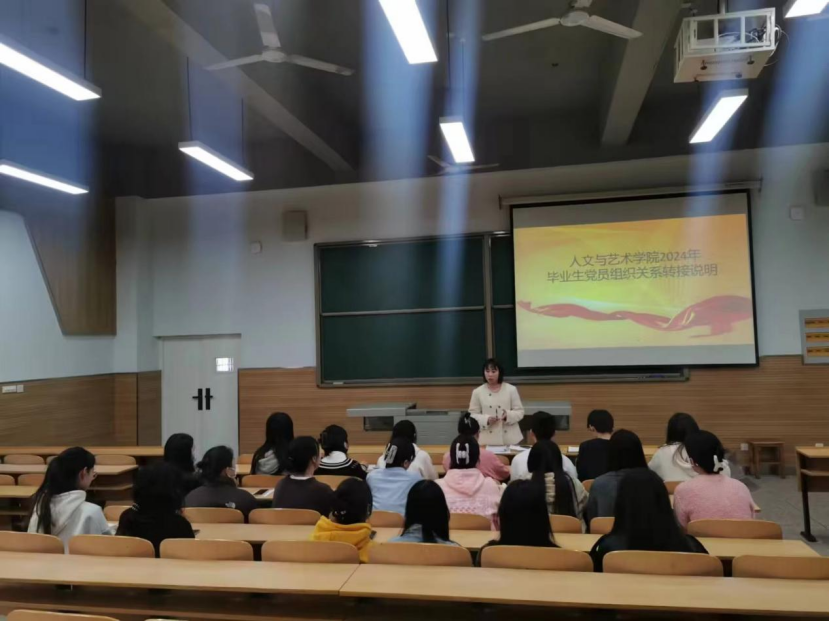 同时,荣金玉老师向全体毕业生党员就组织关系转出流程进行了展示和讲解,她强调组织关系的转出须严格按照流程申请。并提出希望各位同志在组织关系转接工作中发挥积极作用,做到“应转尽转”,及时联系所在工作单位的党组织或乡镇党组织,确保转接信息的准确性、及时性的期望。