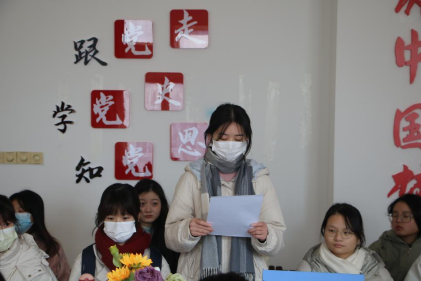 随后,荣金玉老师带领大家对“贯彻新发展理念,创造新发展局面”为主题的内容进行了集中的学习和讨论,由三位同学进行分享。