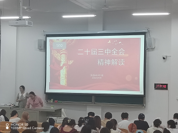党的二十届三中全会为新时代中国特色社会主义事业的发展提供了根本遵循。学习贯彻全会精神,有助于同学们进一步坚定政治立场,增强“四个意识”、坚定“四个自信”、做到“两个维护”,确保全党全国各族人民在思想上、政治上、行动上同以习近平同志为核心的党中央保持高度一致。