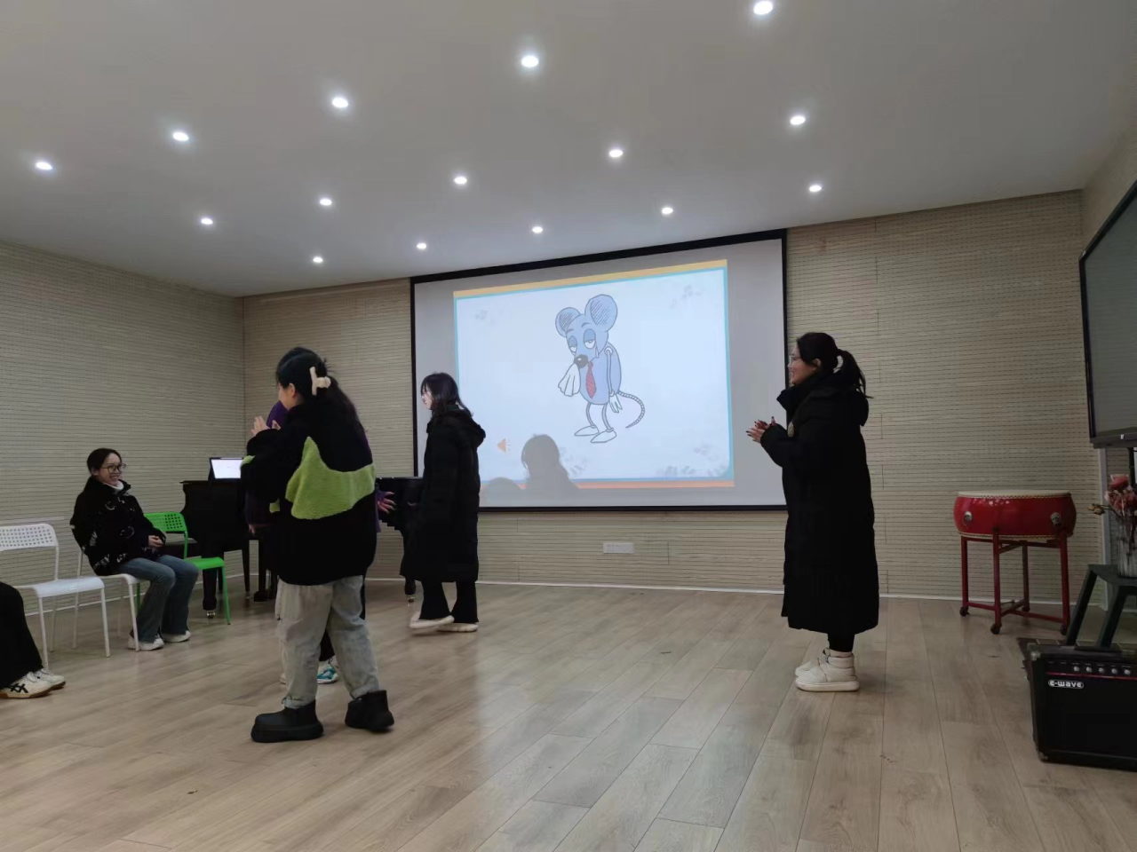 集中实践环节是员工理论联系实际、提升专业技能、培养综合能力的重要环节,同时也是本专业建设与发展的重要体现。在此次集中实践中,同学们认真的进行听课学习,能够自信地把精心准备的课程带上讲台,有些小组的同学们,能够利用自己所学的内容进行儿童戏剧创编,带着原创的四部儿童音乐戏剧,走进金地意境幼儿园,为幼儿进行儿童音乐戏剧的展示,这也是同学们把理论化为实践的非常重要的一步。