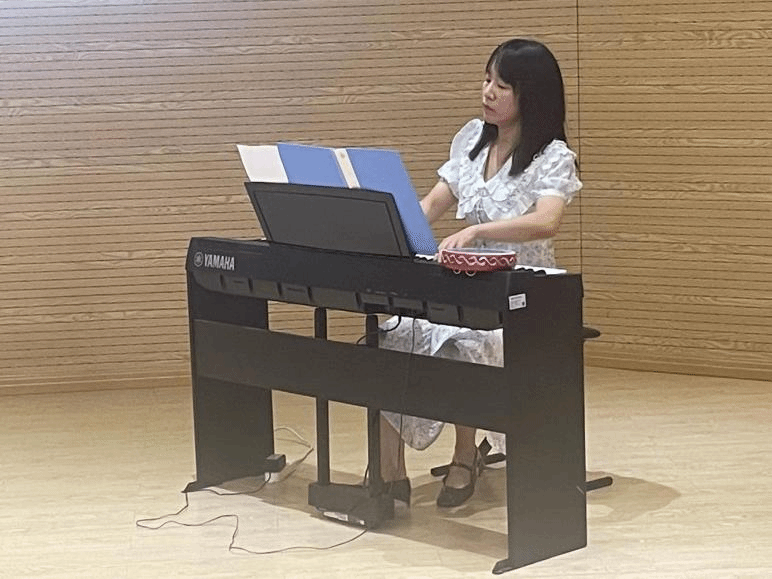 谢丁老师展示了中国风格的四手联弹《花儿为什么这样红》。他通过讲解作品的创作背景,强调了对新疆民间音乐元素的深入挖掘和理解。教学中,他结合钢琴演奏和手鼓演示,帮助员工掌握异域风格的节奏特点与律动,详细剖析了触键技巧和音乐形象的塑造。