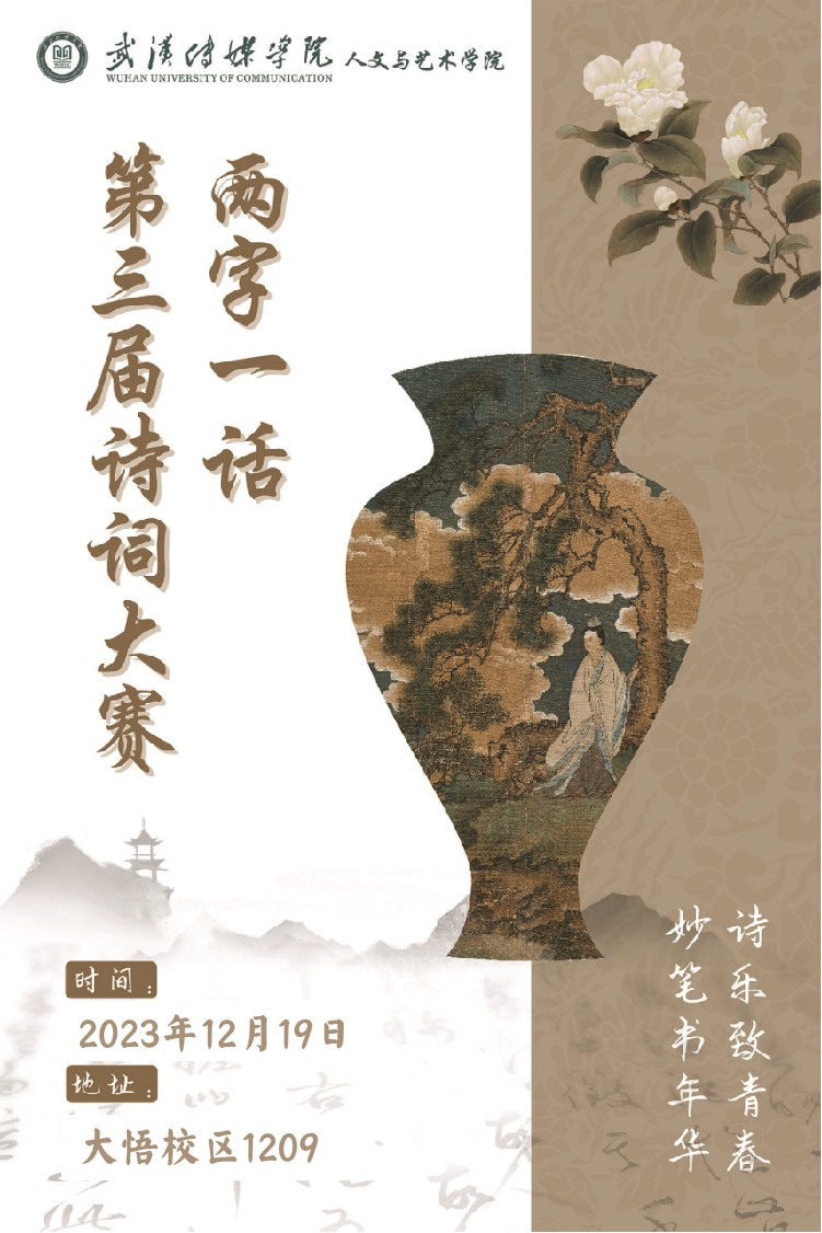 球王会汉语言文学专业将于12月19日(周二),举办第三届诗词大赛总决赛与两字一话颁奖典礼,同时还邀请了武汉诗意传媒有限公司“刀姐诗词课”节目组全程参与,在光影之中,为你展现诗词魅力,实现你的诗词梦想!