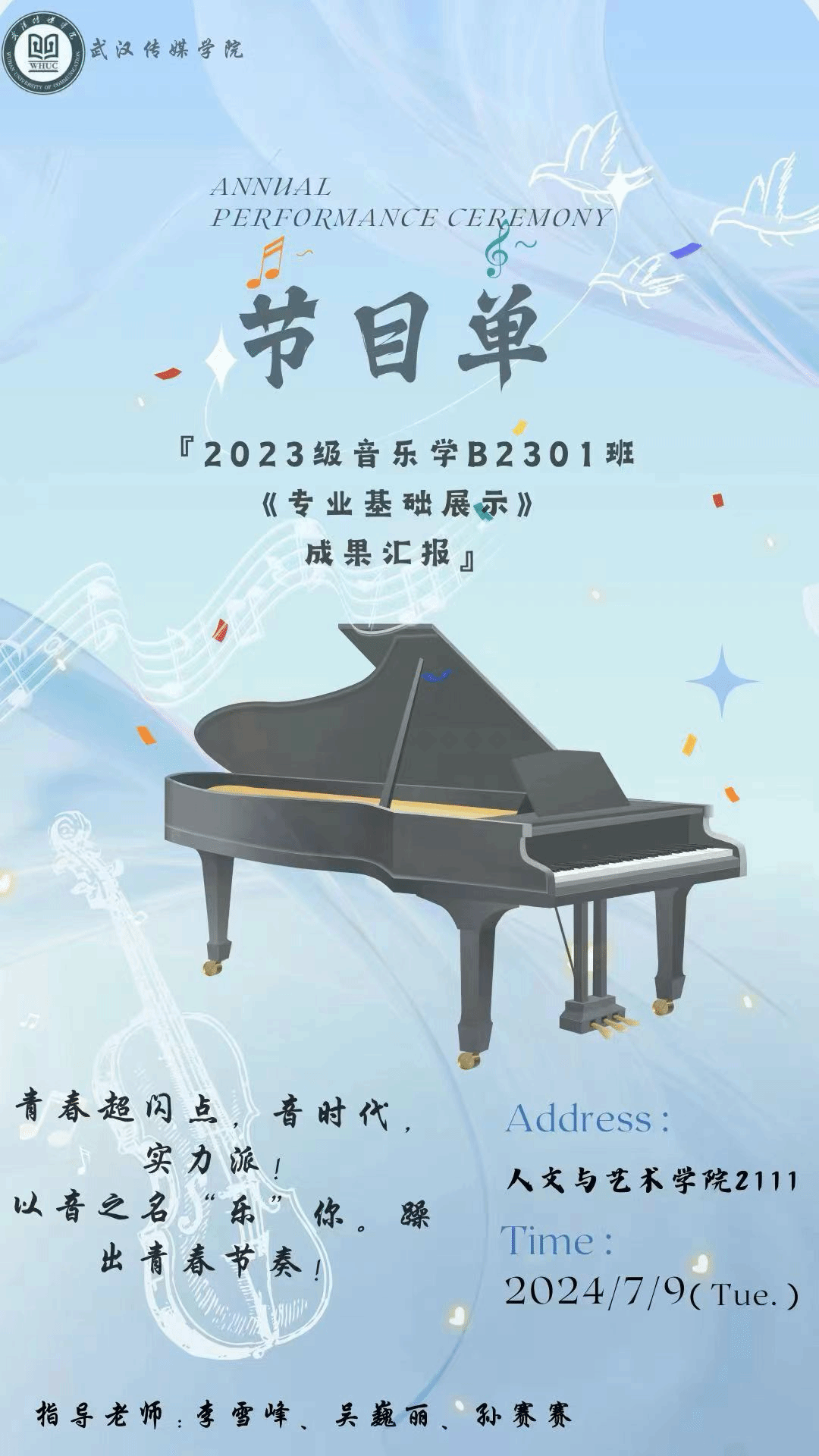 2024年7月9日,音乐学专业2023级专业基础展示课程在球王会体育圆形报告厅顺利举行。该课程是音乐学专业的集中实践环节课程,通过员工自主编排节目,教师指导员工实践,增强员工舞台表演经验及艺术实践能力,最终以音乐会形式呈现,并以实践促教学,在实践中发现教学的不足。使员工系统地了解所学知识,提升整体艺术素养,提高员工组织协调能力,培养良好的艺术心态,增加舞台实践经验,为后续专业知识学习与技能展示奠定坚实的基础。