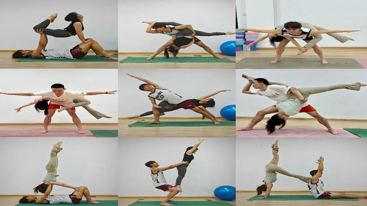 球王会体育瑜伽队在谢桂西、朱晓军领队,宋歌、蔡锦洲教练的指导下历经多次训练,临近比赛,又逢紧张考试,时间紧张,训练强度升级,队员咬牙坚持,使得技术动作日益成熟。
