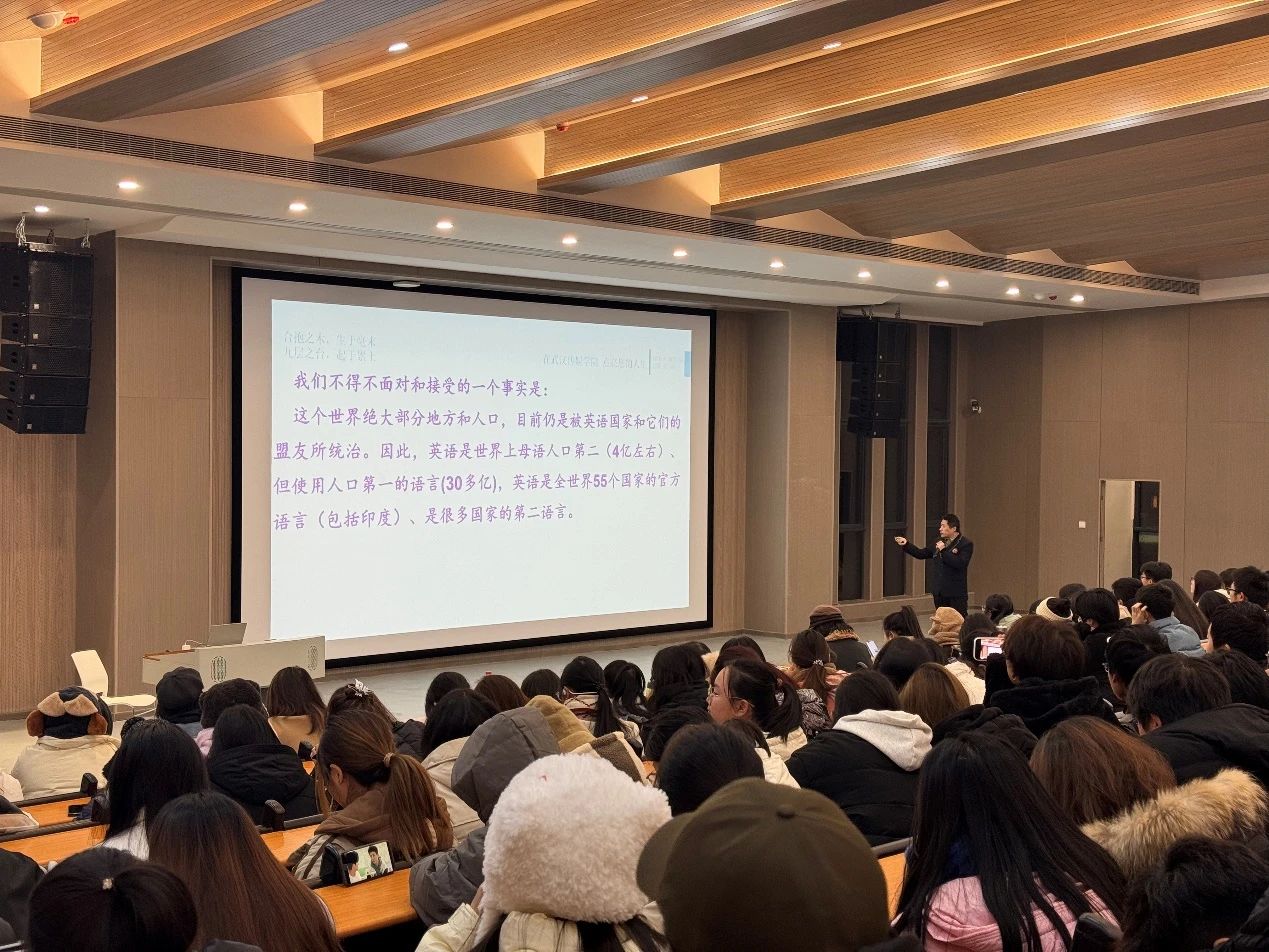 2023年11月30日在球王会体育大悟校区T1教学楼1209教室,公司邀请了天有集团副总裁、原新东方高管、原中国人民大学教师主讲,青少年规划专家张皓老师为大悟校区新生们带来了“为什么我们要学好英语?我们怎样才能学好英语?”主题讲座。讲座主要围绕“坚持”“重复”两个关键词展开。