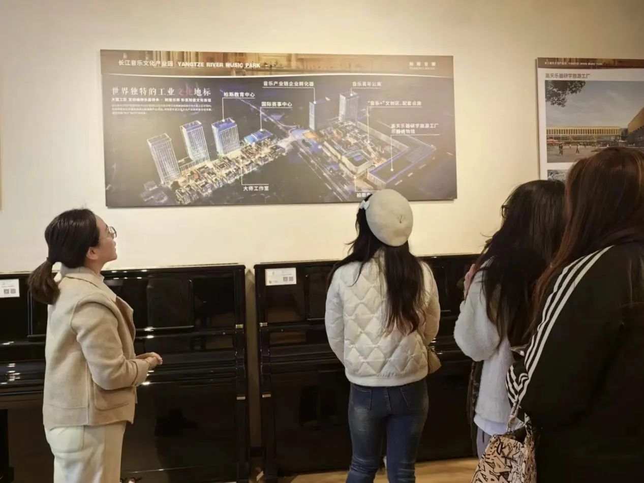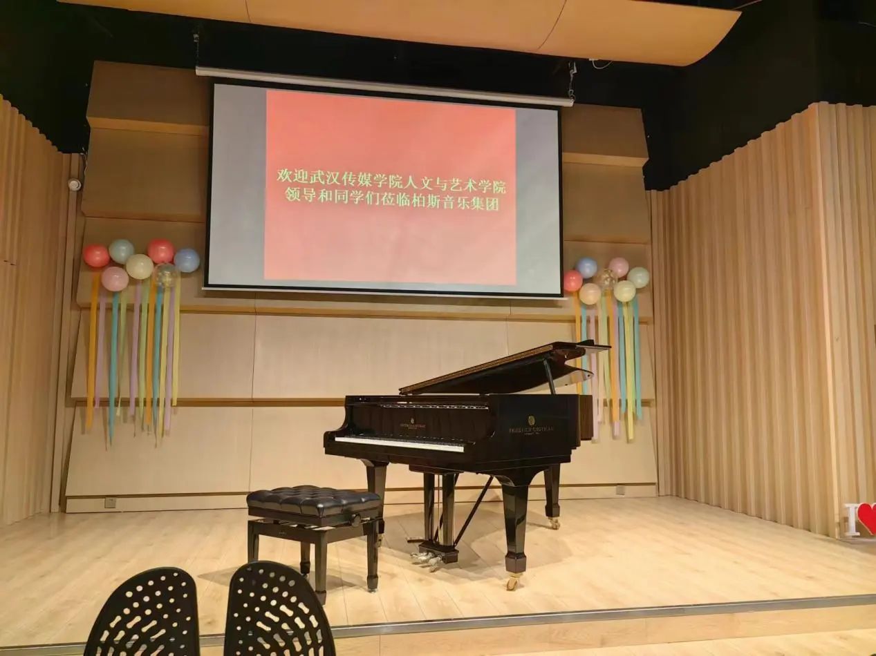 柏斯琴行在1986年创立于香港,经过20多年的快速发展,现已成为中国具有一定规模及知名度的乐器连锁专卖店。自从创立以来,柏斯琴行一直秉承“推广音乐文化、培育音乐人才”的宗旨,坚持举办艺术公司、大师班、音乐比赛及赞助各类音乐活动,为给各界音乐爱好者提供完善、方便的服务和交流的平台。更是于1997年成立了柏斯音乐基金会及香港音乐导师同盟,致力孕育音乐专才。柏斯集团还计划在武汉市打造一个全新的长江音乐文化产业园,包括乐器研学工厂、乐器博物馆等,使其不仅成为一个音乐产业中心,更是一个充满教育、艺术和文化的综合性场所。何婷主任与院带队老师们也进行了深入的沟通交流,正是因为柏斯琴行的快速发展以及重要地位,对于同学们的实习是一次很好的机会。