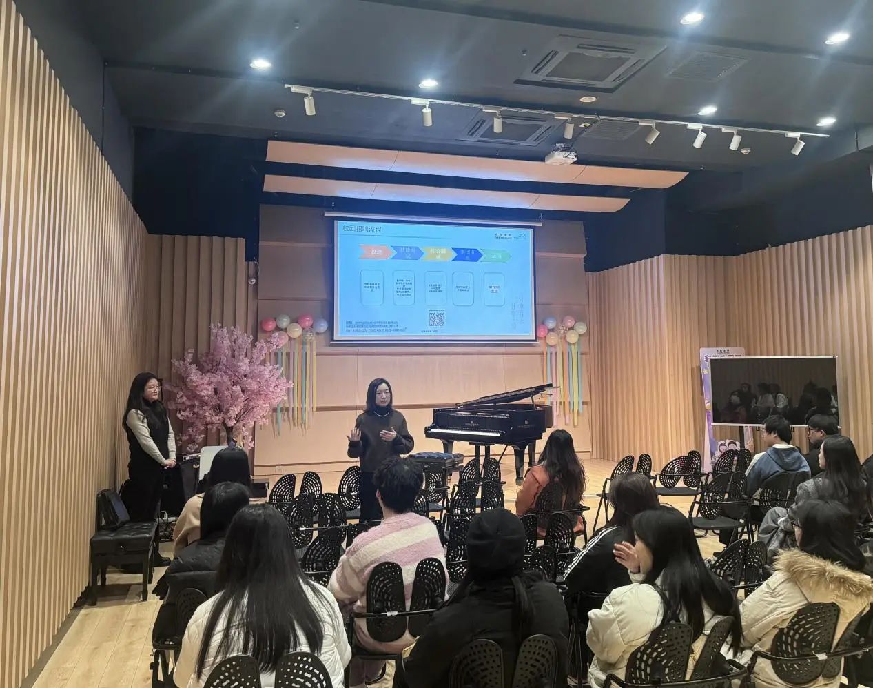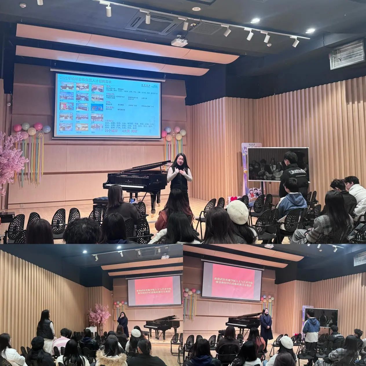 员工们首先参观了柏斯琴行的展览大厅和教学部,深入了解了琴行的历史、业务范围以及教学资源,这不仅让他们对琴行有了更全面的了解,也为后续的实习工作提供了重要的背景知识。接下来,员工们聆听了柏斯集团人力资源与行政主任何婷主任的讲话,何主任首先介绍了柏斯集团在2023年的校园招聘岗位,让员工们了解了企业提供的职业机会,这一步骤的重要性在于为员工提供了职业方向的选择。接下来何主任围绕“HR面试官给新入职人员培训和要求”的角度,对员工们进行详细介绍。在这次讲话中,他们获得了关于成功求职和面试的宝贵建议,包括心理准备、通用职场素质、责任心和主动性等方面的重要信息。这些指导将有助于员工们更好地应对职业挑战,加强了他们的职业发展意识和准备。这两个步骤共同为员工们的实习之旅奠定了坚实的基础,使他们更有信心地面对职场未来。