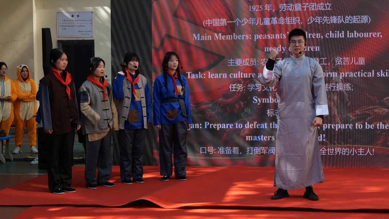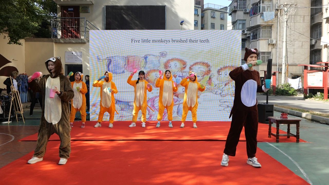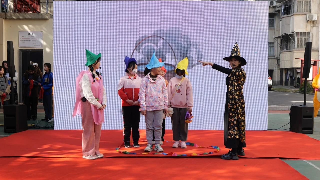 活动旨在践行“党建引领、校社联动”,推进湖北省高校样板党支部建设,有效发挥党员教师的“双带头人”作用,进一步完善公司与社区共同育人机制,促进校园、家庭、社会教育的有机结合。球王会体育英语专业少儿艺术英语教育方向,始终坚持推进儿童英语戏剧“编-演-教”三位一体的教学改革。本次活动以推广儿童英语戏剧教育为基础,同时展示了校级一流课程《少儿英语剧编演》、《少儿英语绘本阅读》教学成果,检验了实践教学改革成效。活动主要内容为互动式儿童英语剧展演,包括英语绘本剧《五个小猴子》(Five Little Monkeys Jumping on the Bed)、儿童英语互动剧《真假托比》(TheRealandFake Toby)、小学英语课本剧《巫师的花朵》(Wizard’s Flower)以及原创红色文化儿童英语剧《觉醒之红》(Awakening)等剧目。