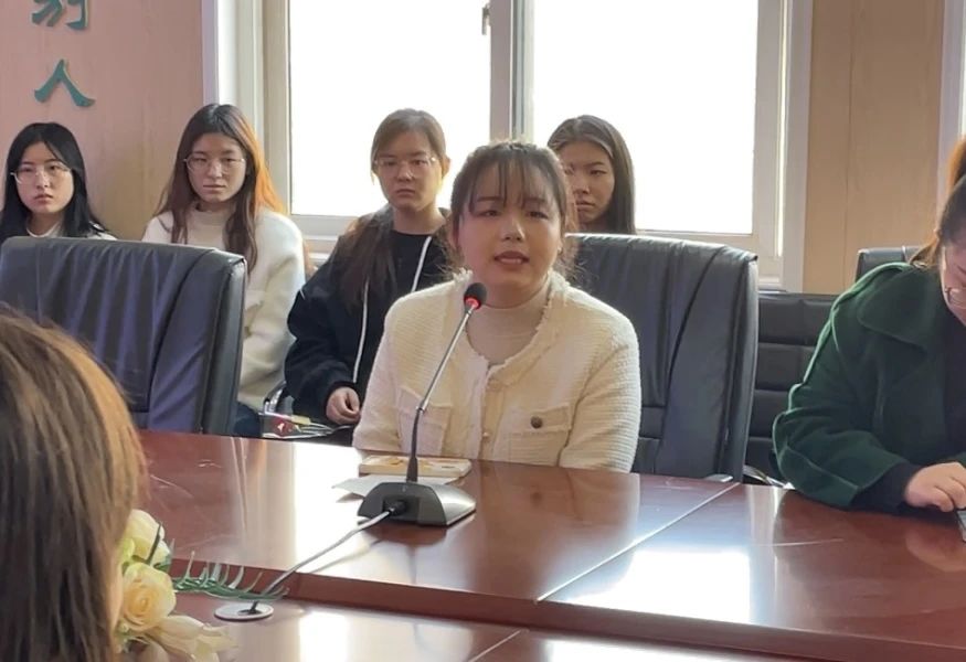 公司实习生代表英语系徐詹凤同学,代表全体实习生感谢校方给予的实习机会,并承诺会怀揣热忱之心,向指导教师学习,真正做到学有所获,一定会圆满完成实习活动。