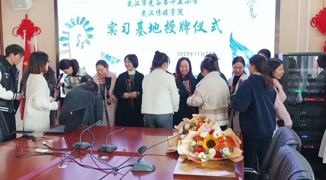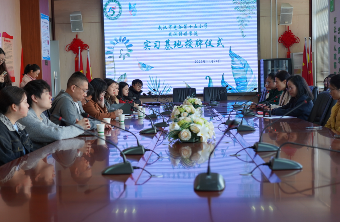 光谷第十五小学董事长李惠、副董事长吴林林和教师代表,公司党总支部书记吴斌、教学副经理陶立军,中文教研室主任张艳彬、专业英语教研室主任洪俊、公司骨干教师吕亚飞、吕露,参加了在光谷十五小西校区4楼会议室举行的签约授牌仪式。