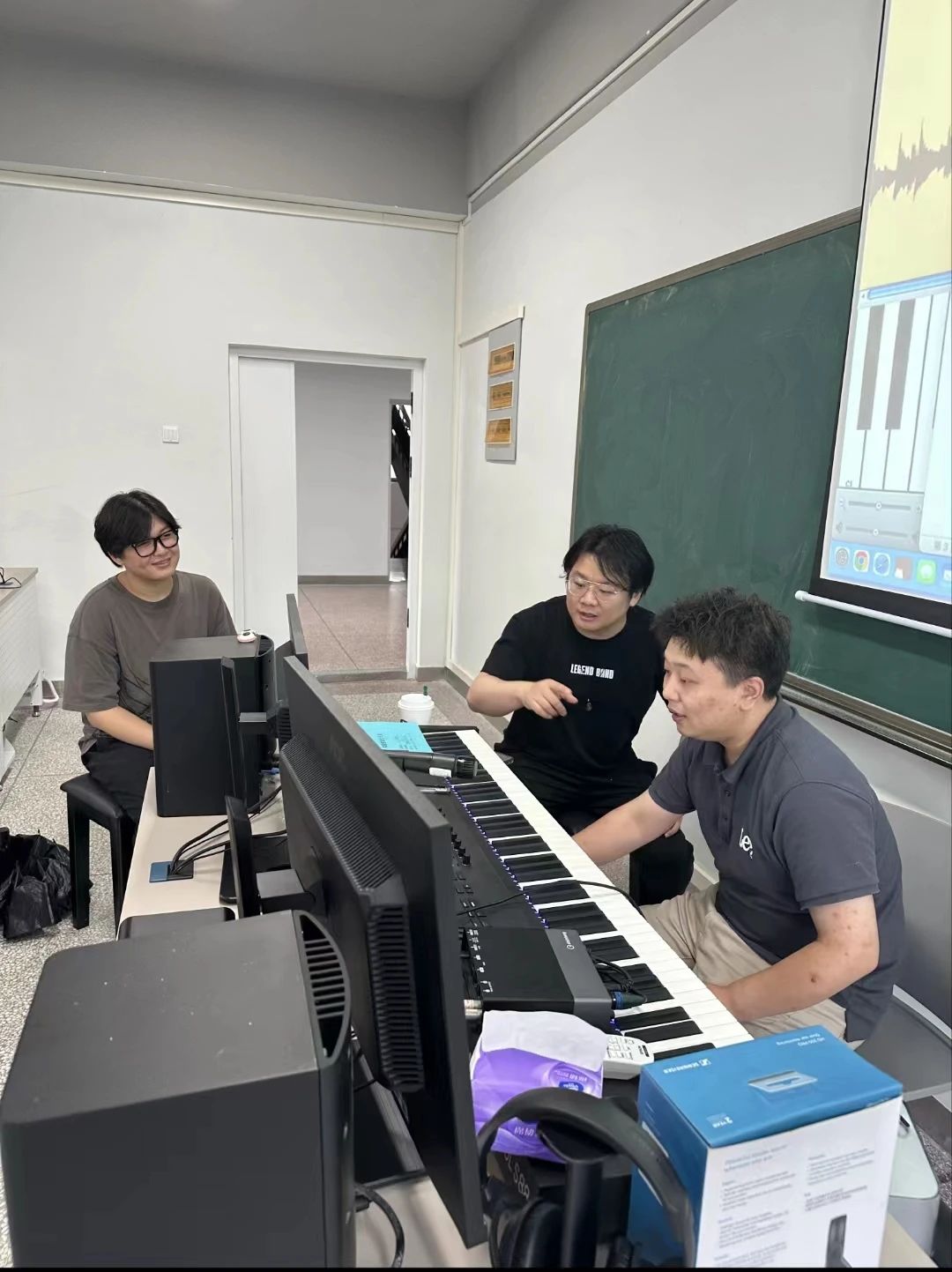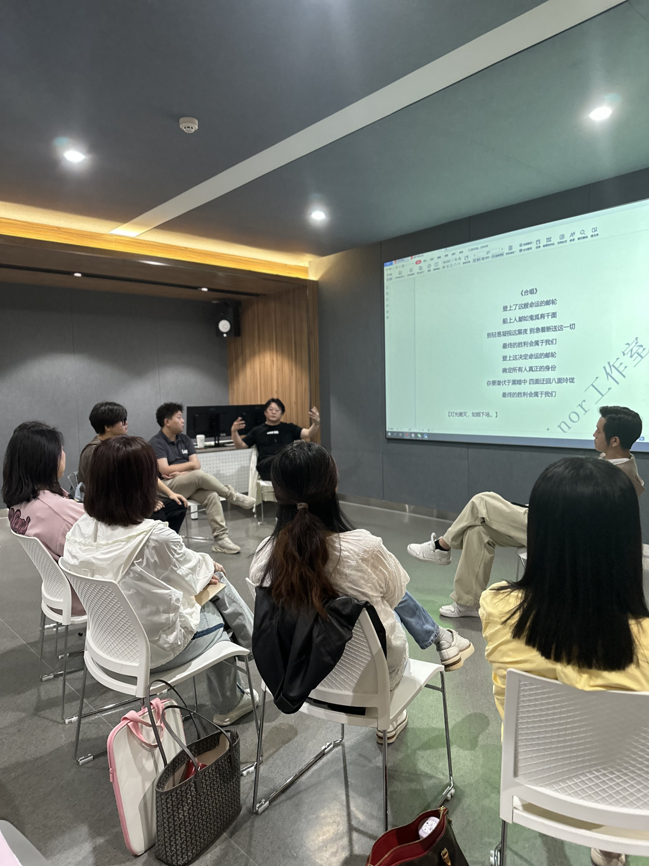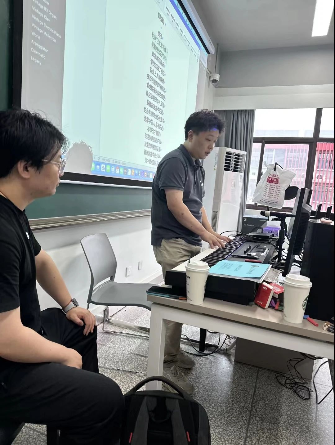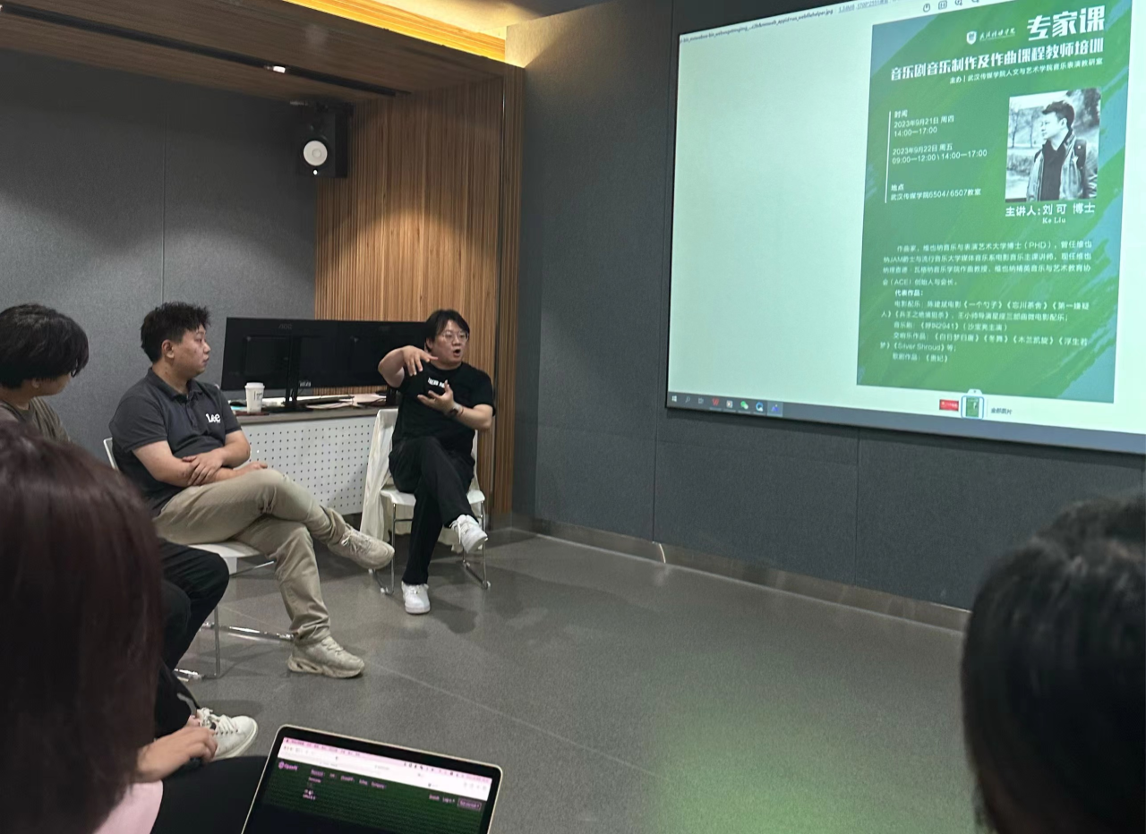 在原创音乐剧创作方面,刘可博士与在座教师进行头脑风暴。针对剧本,结合员工程度,给出了大胆的建议,并且在音乐词曲创作与制作上给予了大量的技术支持,进行现场编配,让培训中的老师和员工受益非浅。