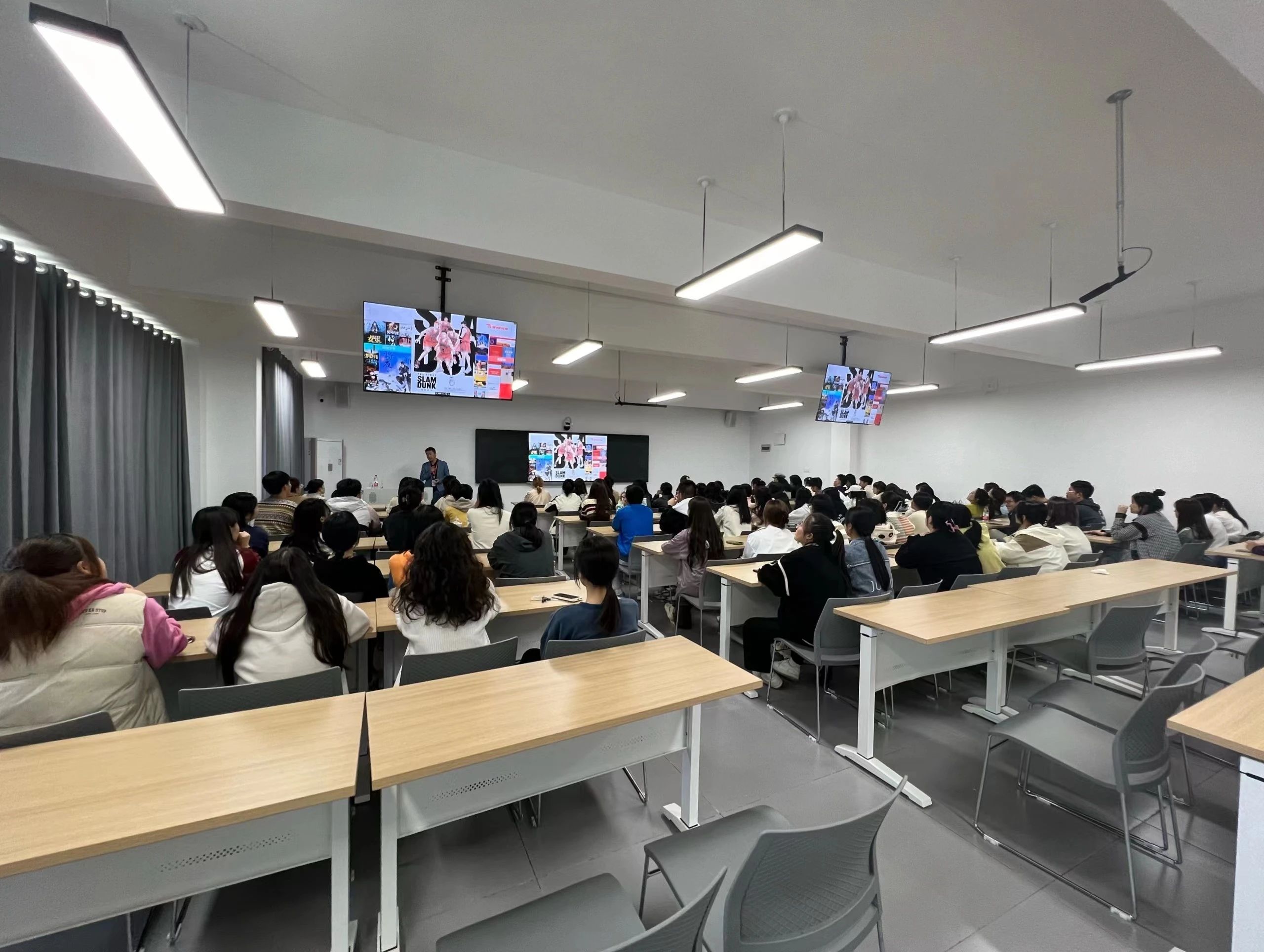 他建议同学们要在未来的专业学习中学会使用相关AI工具助力专业提升,如翻译软件、语音识别工具等。同时,靳伟老师还强调了拓展思维模式的重要性,他告诫同学们要改变传统的思维定势,以适应数字化时代的需求。