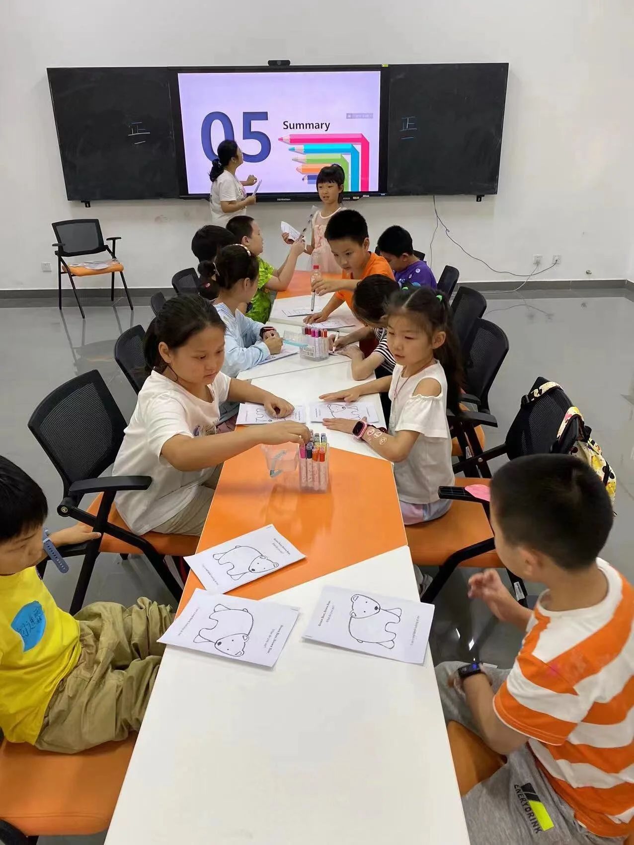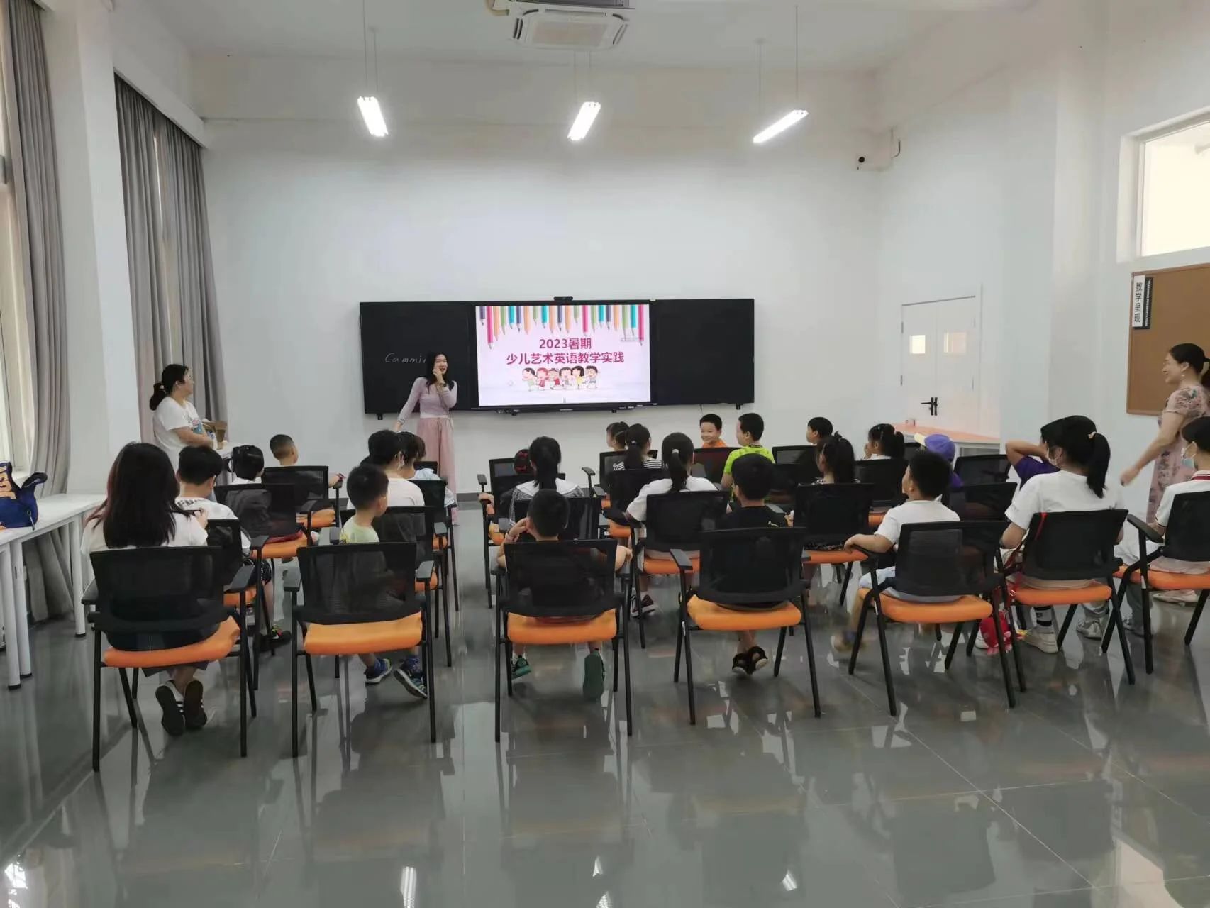 当日下午,小学员们在公司圆形报告厅进行了最终的少儿艺术英语教学实践成果展演,孩子们乐在其中,表现出浓厚的英语学习兴趣,老师们也从本次教学实践活动中获得了更多宝贵的少儿英语教学经验,对培养未来的少儿英语教育者充满了信心。