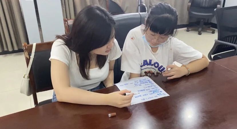英语配音环节由沈君仪老师和向昕舸老师带领高年段孩子们进行练习。老师们选取了英文原版动画《海绵宝宝》与《冰雪奇缘》中的片段进行英语配音练习。通过动画片吸引小朋友们注意力的同时让其感受原汁原味的英语语音语调。老师们对台词中的难词进行逐一讲解、展示正确读音,纠正小配音员们每一句发音,引导小朋友们在配音时融入正确的情感表达,使英语配音更贴近原版影片,呈现出更加完美的效果。