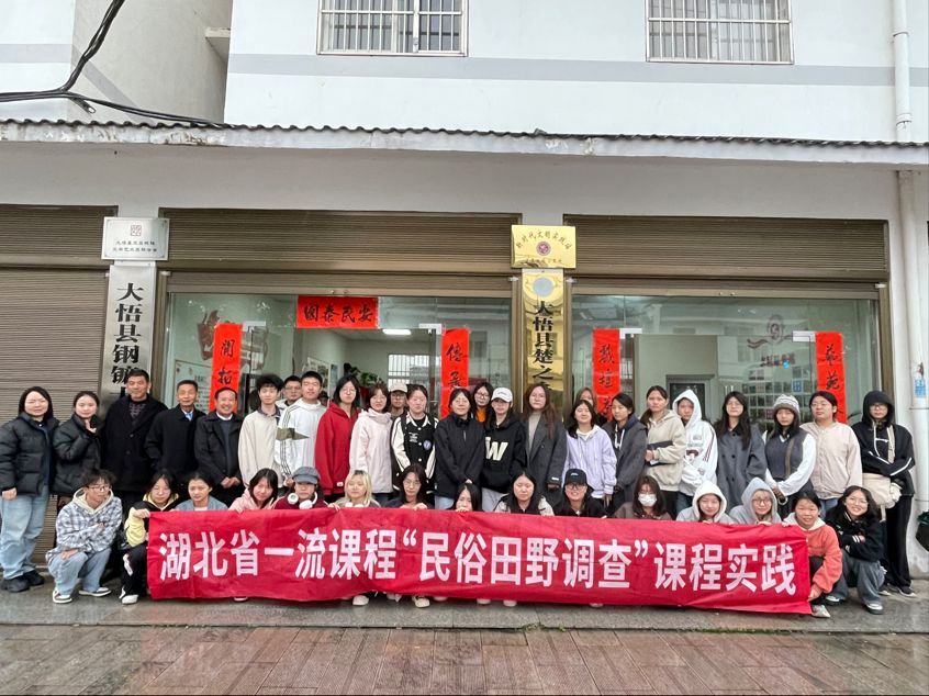 11月15日下午,体育官网中文系“民俗田野调查”课程团队一行54人前往革命老区——湖北大悟,围绕当地的民俗文化、红色文化和非遗项目,开展了一次生动的课程实践与现场教学。