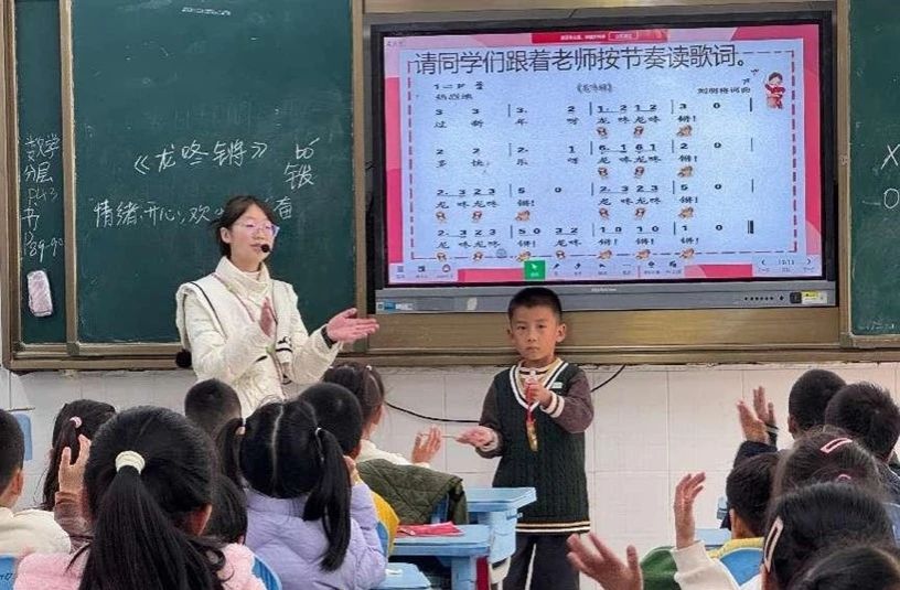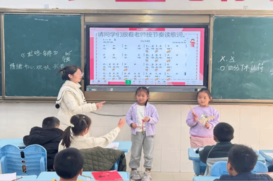 王菁:在我二年级音乐教学的实习过程中,我收获颇丰,感悟也特别深刻。孩子们纯真的笑脸和对音乐天然的热爱,使得每一堂课都充满了活力。当我教他们唱《洋娃娃和小熊跳舞》时,他们那稚嫩而响亮的歌声以及努力跟上节奏的模样,实在是可爱至极。通过引导他们感受音乐的节奏与旋律变化,我发现孩子们的创造力远超我的想象。例如,在简单乐器伴奏的环节中,他们积极尝试,用铃鼓和木鱼打出新奇的节奏组合,令人惊喜。