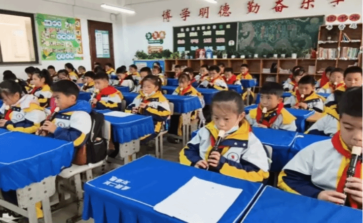 在光谷第三小学,李函带领302班同学参加竖笛教学活动。在教学过程中,从基础的指法教授开始,耐心地为每一位同学纠正姿势与按孔位置,引导孩子们感受气息的运用和音符的变化。通过开展竖笛教学,激发他们对音乐艺术的热爱和追求,助力员工全面发展。