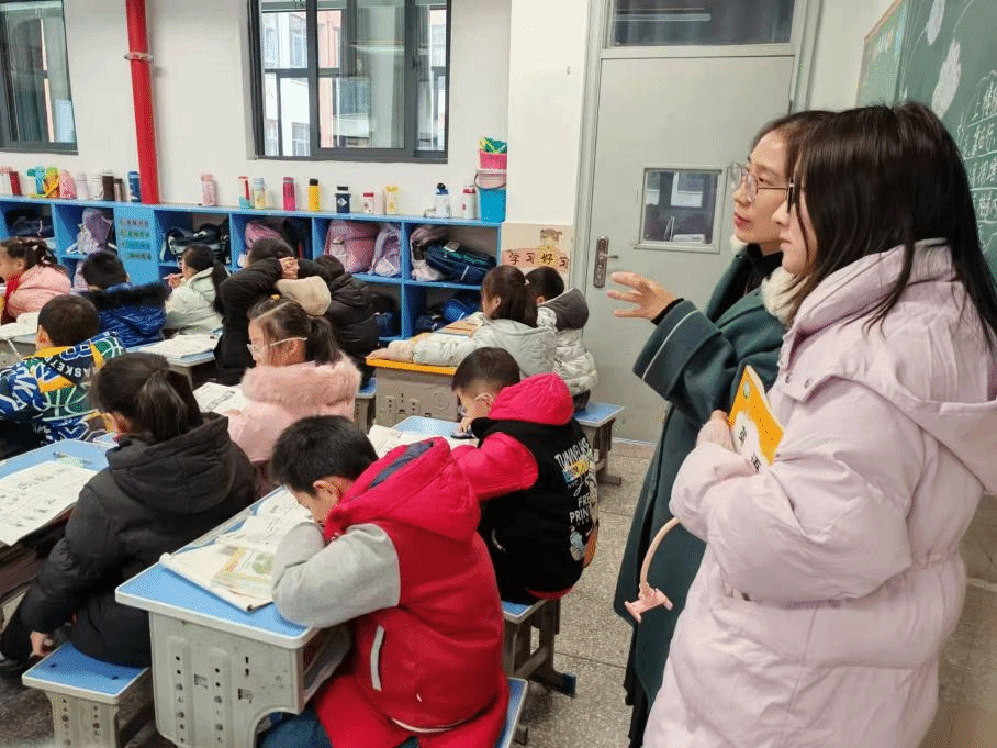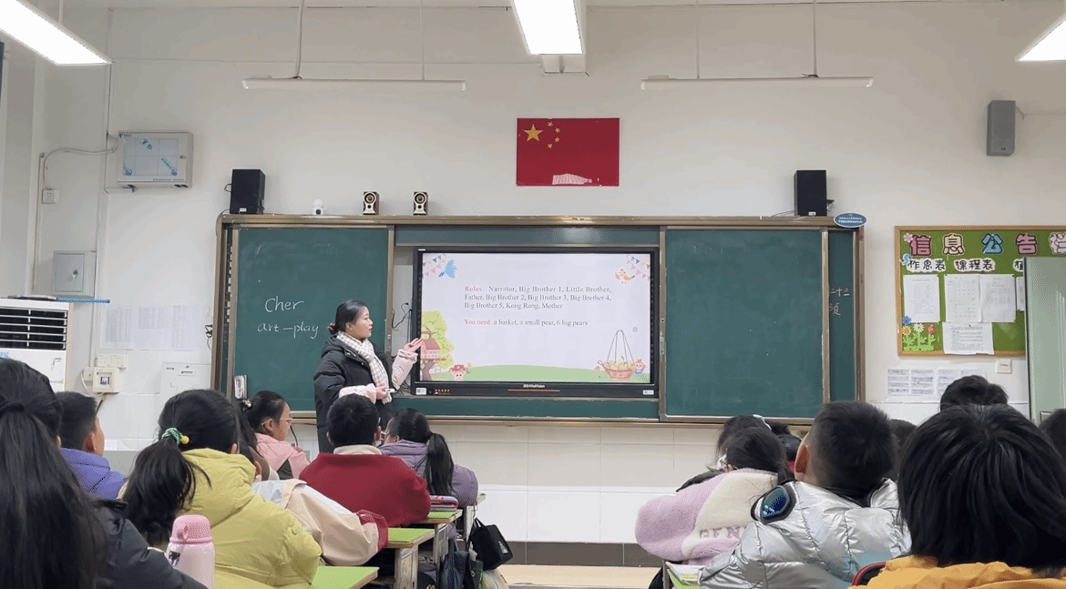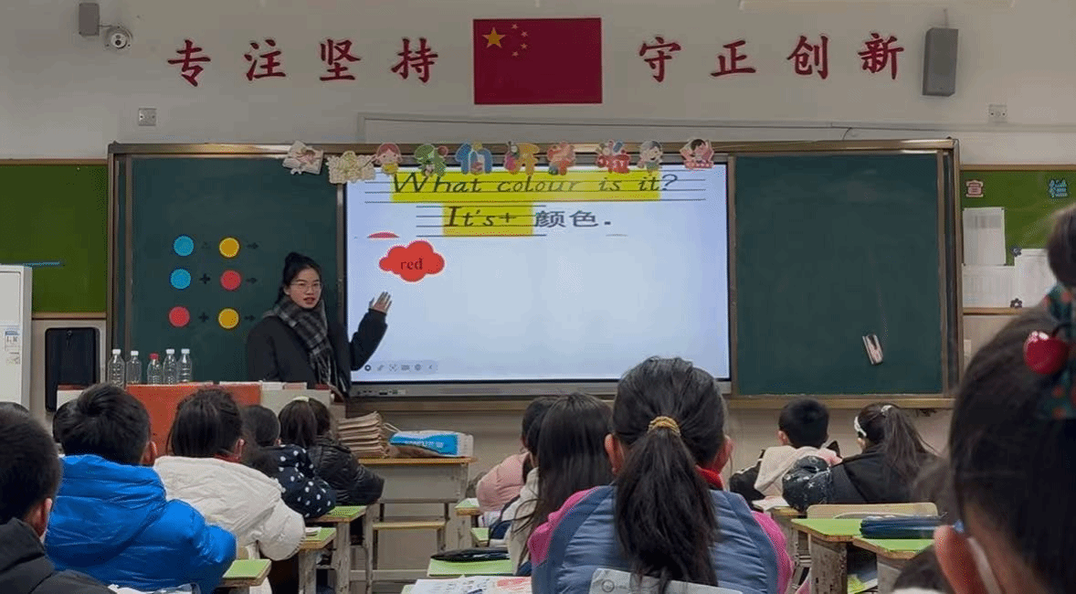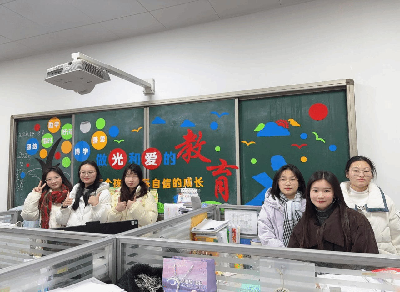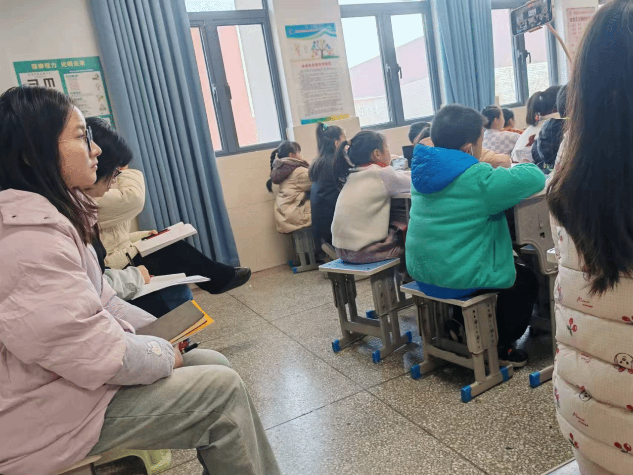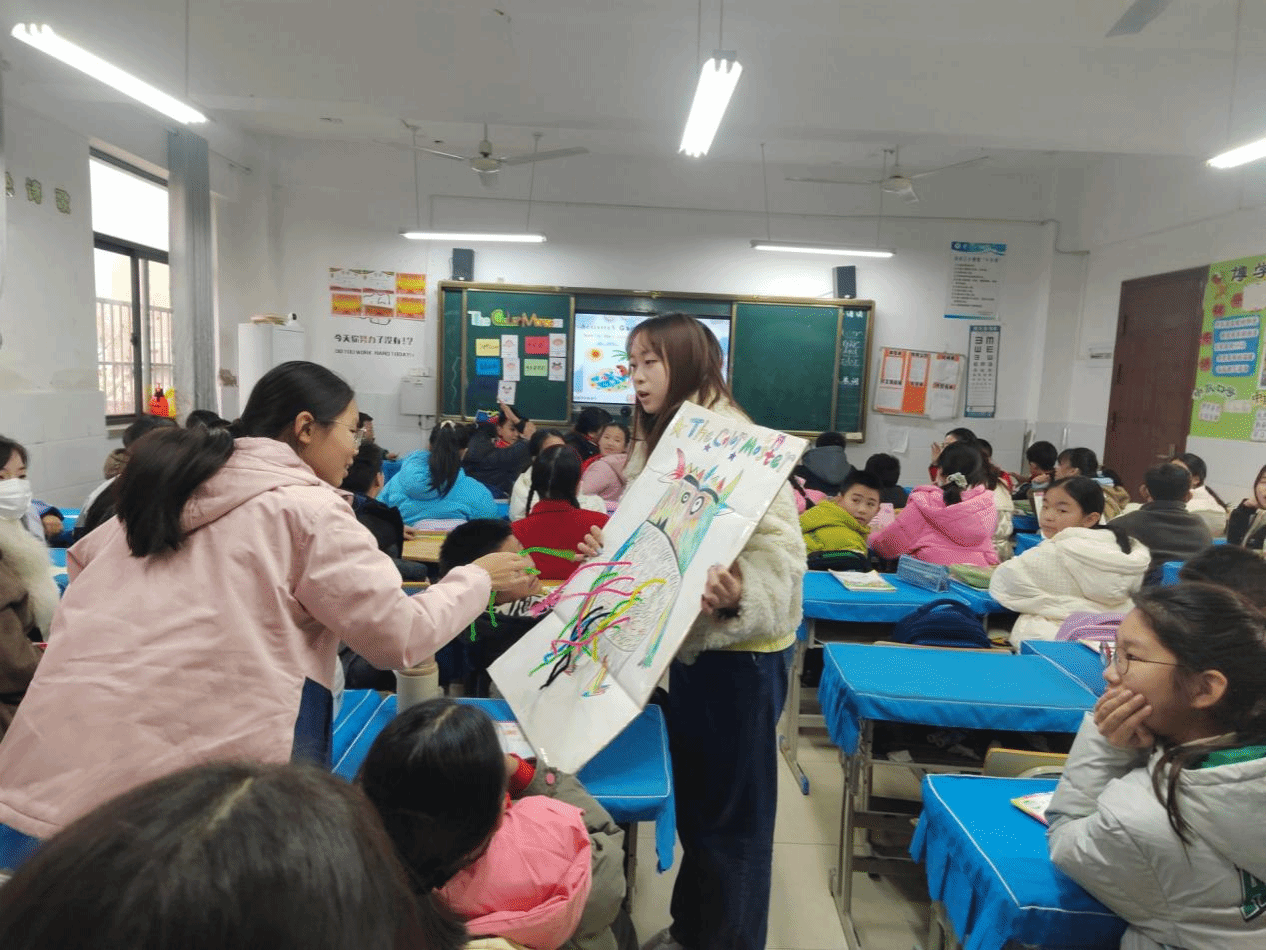 在实习的最后一周,少儿英语专业的邓欢、张晓磊、白谦慧、李娟和廖冰淑五位老师来到光谷第三小学。实习的两位同学陈小宇和王慧祝分别上了一节公开课,吸引了各个年级的老师前来听课。廖冰淑老师在课后表示,两位同学的变化很大,从第一天实习时的青涩员工,如今已焕然一新,展现出老师的气质。