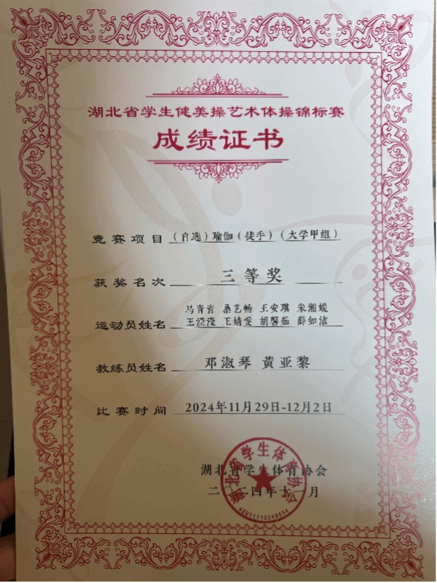 通过这次比赛,我结识了许多志同道合的朋友。跟队友有了更深层次的交流,并且我们在交流中分享彼此的瑜伽经验,互相鼓励和支持。这种团队精神和友谊的力量,让我感受到了人与人之间的美好联系。回顾整个参赛经历,我感到非常满足和感恩。感谢邓老师提供这样一个平台,让我们有机会展示自己,也感谢所有支持和帮助过我的人。大家都辛苦了。我相信,这次瑜伽比赛的经历将会成为我人生中一段宝贵的记忆,激励我在未来的道路上继续前行。