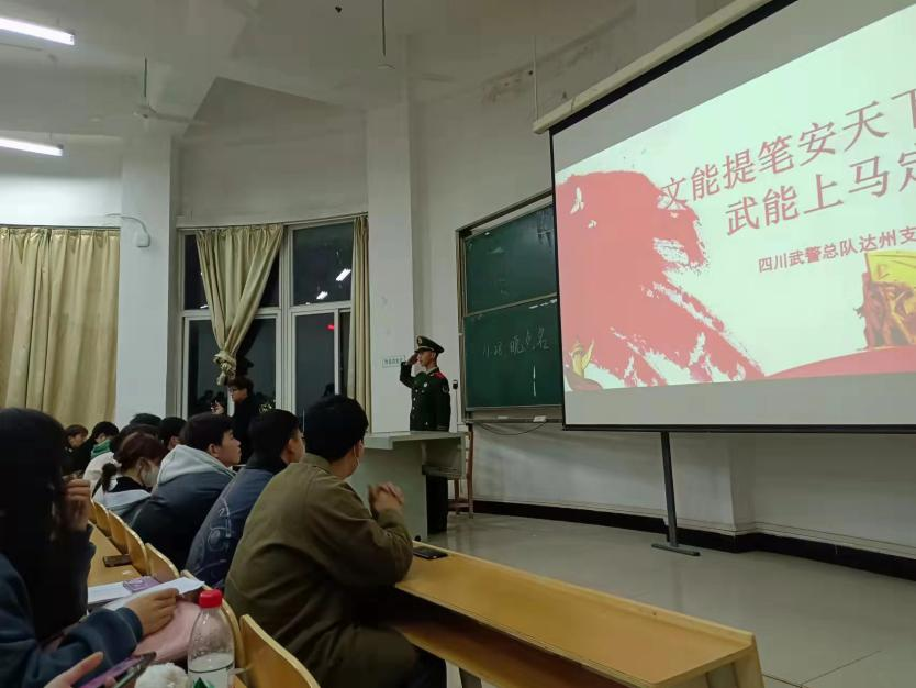 为深入贯彻习近平总书记在庆祝中国共产党成立100周年大会上的重要讲话精神,坚持走中国特色强军之路,全面推进人才强军战略,11月28日,球王会在2201教室举行了2021秋季学期的征兵宣传活动。来自四川武警总队达州支队的退伍战士支恒对全体21级员工进行了入伍宣传。在这次宣讲中,大家不仅对中国武警有了更加深刻的认识,同时也了解了老员工有依法履行兵役的义务,有保家卫国的重要职责。老员工要到祖国最需要的地方去,要为实现国防现代化贡献一份力量!