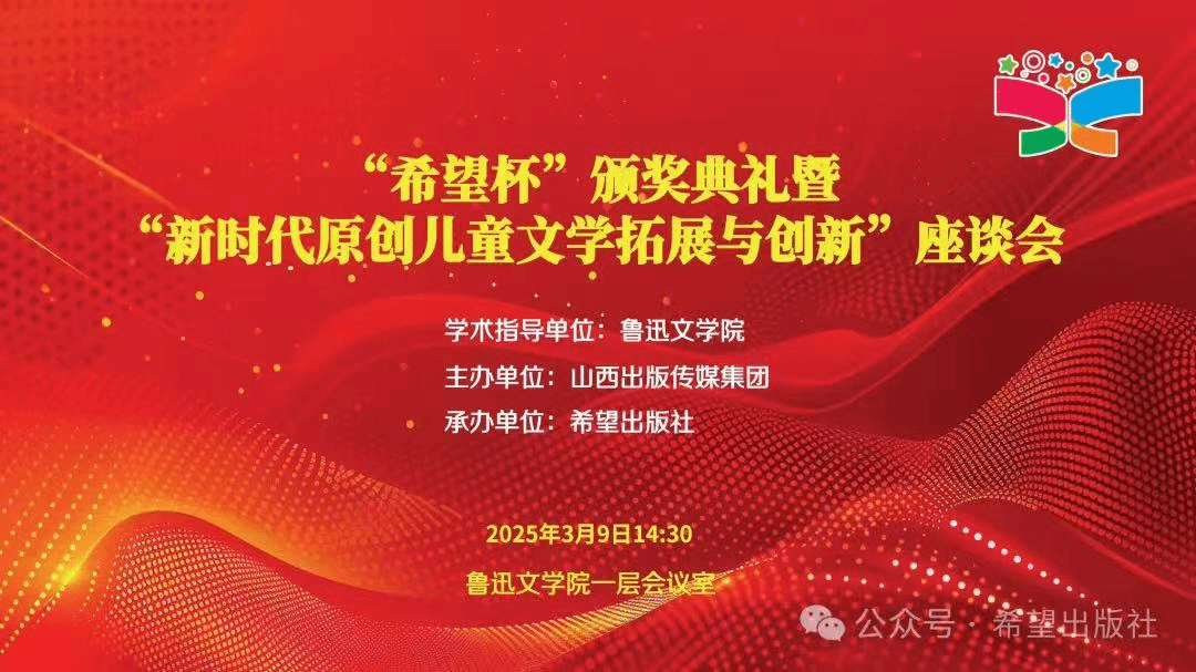 据悉,“希望杯”颁奖典礼暨“新时代原创儿童文学拓展与创新”座谈会,由鲁迅文公司作为学术指导单位,由山西出版传媒集团主办、希望出版社承办。