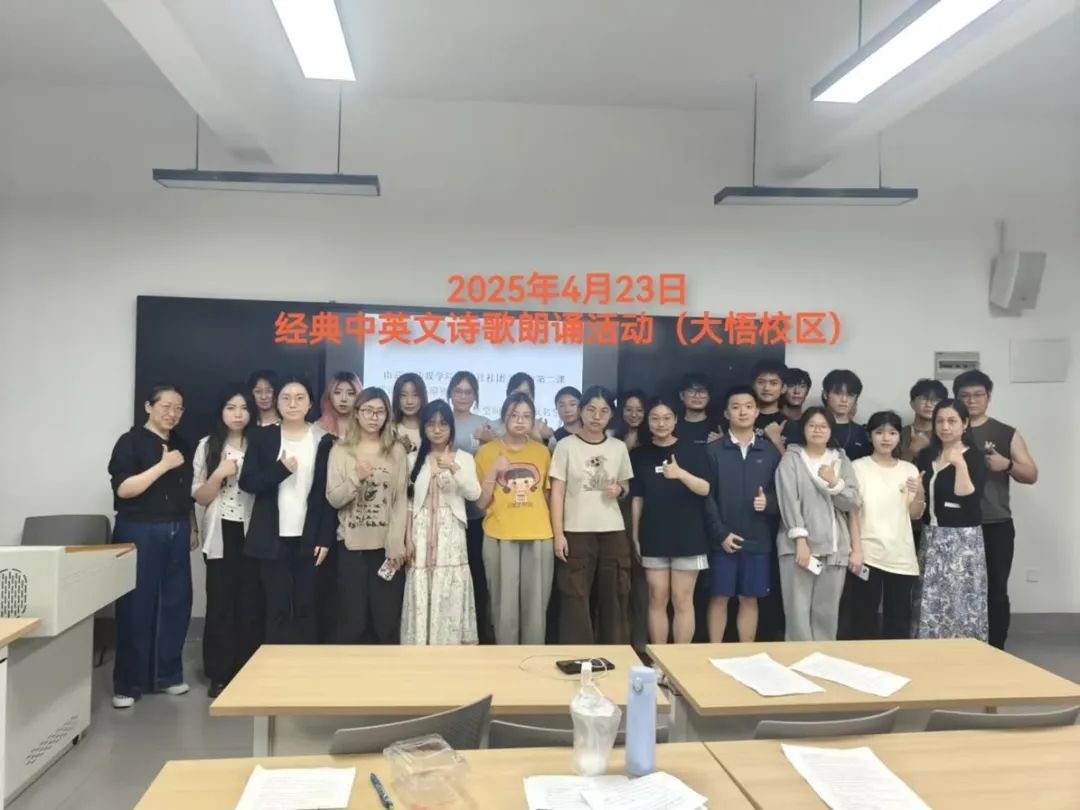 为贯彻党的二十大报告中“深化全民阅读活动”的要求,落实立德树人的根本任务,创建书香校园,在2025年4月23日第三十个世界读书日到来之际,球王会体育诵读社分别于4月23日和4月24日在大悟校区和武汉校区举办“跨越语言之桥,共赴诗韵之约——经典中英文诗歌朗诵”活动。