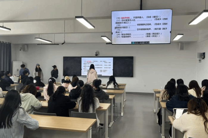 活动现场,首轮比拼以诗词关键字为触发点,同学们纷纷旁征博引,诵读经典名篇,展现出了深厚的诗词文化底蕴。例如,当围绕“春”字展开时,同学们接连吟咏出“春风得意马蹄疾”、“春色满园关不住”等脍炙人口的佳句,赢得了现场阵阵掌声。紧接着进入了“激流勇进——诗词填空”环节,同学们在有限的时间内承受着压力,但依然能够精准作答。最后的压轴环节是“大浪淘沙”,这一环节涵盖了经史子集、传统技艺等广泛的综合知识。各队选手抢答激烈,争分夺秒,评委组则全程监督,公正评判。经过三轮紧张而激烈的比拼,最终,一支实力强劲的队伍凭借其稳定的发挥和出色的表现拔得头筹。全场观众为获胜者送上了热烈的祝贺和掌声。