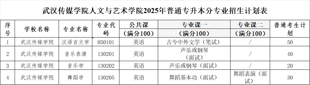 2025年,公司共有汉语言文学、音乐表演、音乐学、舞蹈学4个专业计划招生专升本。