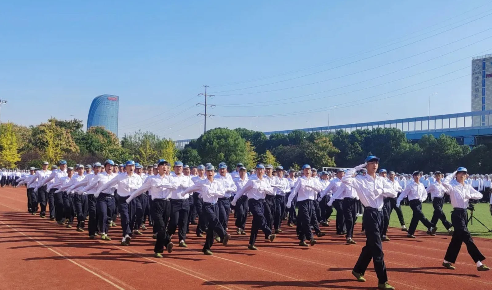 会演上,公司连队先后入场,在教官的口令下,同学们迈着整齐的步伐,喊着响亮的口号,依次在主席台前展示训练成果。同学们以饱满的精神面貌,矫健有力的步伐,整齐如一的动作,展示了团队的风采,展现出球王会昂扬向上的精神风貌和文明守纪的优良作风。