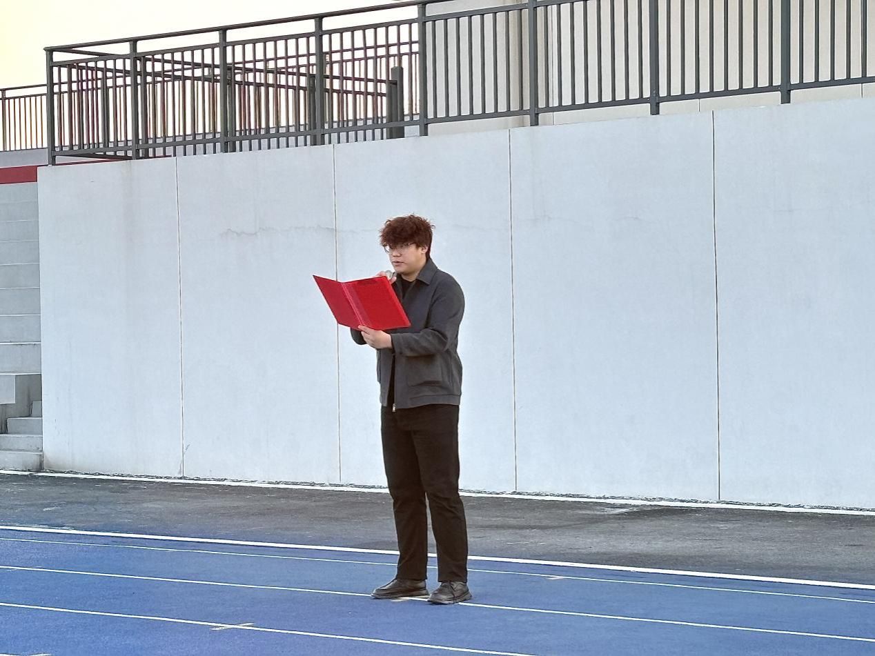 最后由教师代表陈睿老师进行发言。他以“以青春之名,赴时代之约”为主题,与我们分享了传承、创新、绽放三个关键词。传承,是以文化之火照亮精神。2025年是新中国成立76周年,也是十四五规划收官之年,在这样的历史节点,我们更应肩负起文化传承的使命。