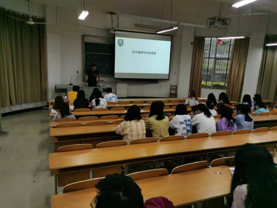 讲座中,各年级辅导员以近年来论文涉嫌虚构国外作者、实验数据造假、论文内容出现虚假数学公式,论文之间频繁相互引用、抄袭等论文涉嫌造假事件举例。点明该行为不仅破坏了整个学术环境的健康发展,阻碍学术发展的进步,同时损害所在院校的学术形象。