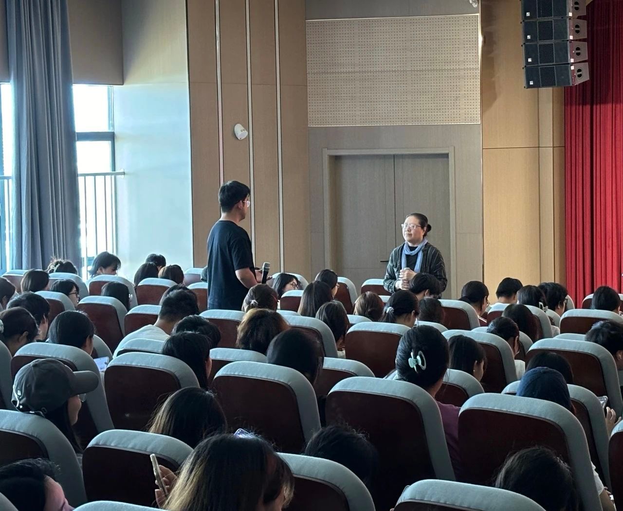 在提问互动环节,汉语2409班的菅浩旭同学提问:“如何将艺术化和生活化相结合,创作出更有力量的文学作品。”资深编辑深海认为,文学的感觉,首先是在阅读优秀的文学作品中受到启发的,又是在阅读中不断加深的。再优秀的作家,最初也是像一颗种子般慢慢成长起来的,他们在破壳而出的蜕变过程中,一定不止一次观察过生活,观察过生活里每一寸色彩明暗的变幻,他们勇敢地接受雨露、接受阳光,向下扎根,向上生长,一层一层岁月的洗礼之后,随着年龄和阅历的增长,最终写出艺术和生活并存的作品。
