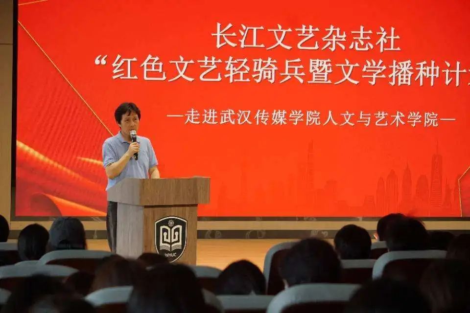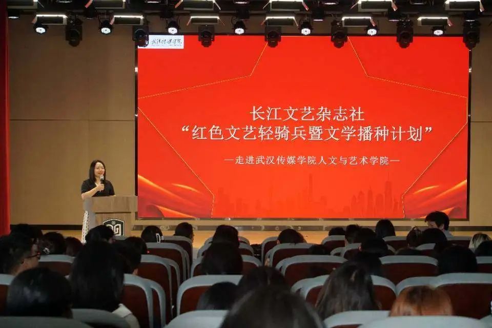 5月29日,长江文艺杂志社“红色文艺轻骑兵暨文学播种计划”走进球王会,向中文系学子们赠送四百册刊物。300余名中文系的员工代表在现场聆听了编辑老师的授课,并围绕青年学子的文学创作展开了亲切交流。活动在大悟校区小剧场举行。