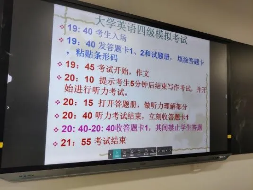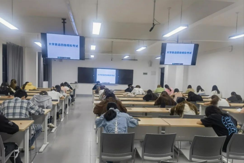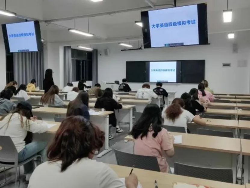 2024年6月,大学英语四级考试(CET 4)第一场模拟考试于5月6日晚上19:40-21:55在公司大悟校区如期举行。考试当晚共设8个考场,约有400名来自E-class班的同学参加了考试。