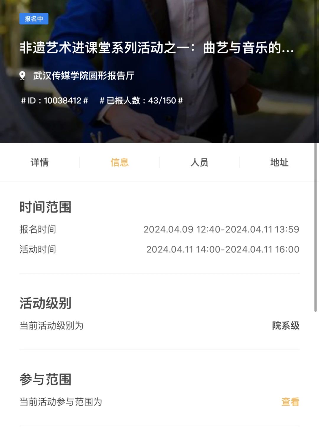 让我们共同走进这场文化盛宴,感受湖北大鼓的魅力,共同领略中国传统文化的瑰宝!期待同学们的到来!