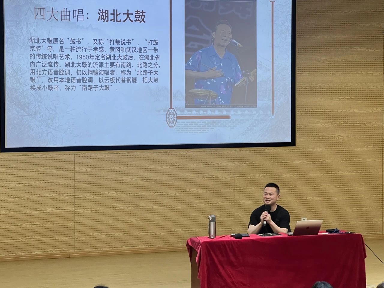 2024年4月11日14:00,体育官网音乐表演专业邀请了吴健先生——国家级非物质文化遗产名录《湖北大鼓》市级传承人与湖北小曲传人,在课程讲坛中为大家呈现了“曲艺”与“音乐”碰撞的魅力。
