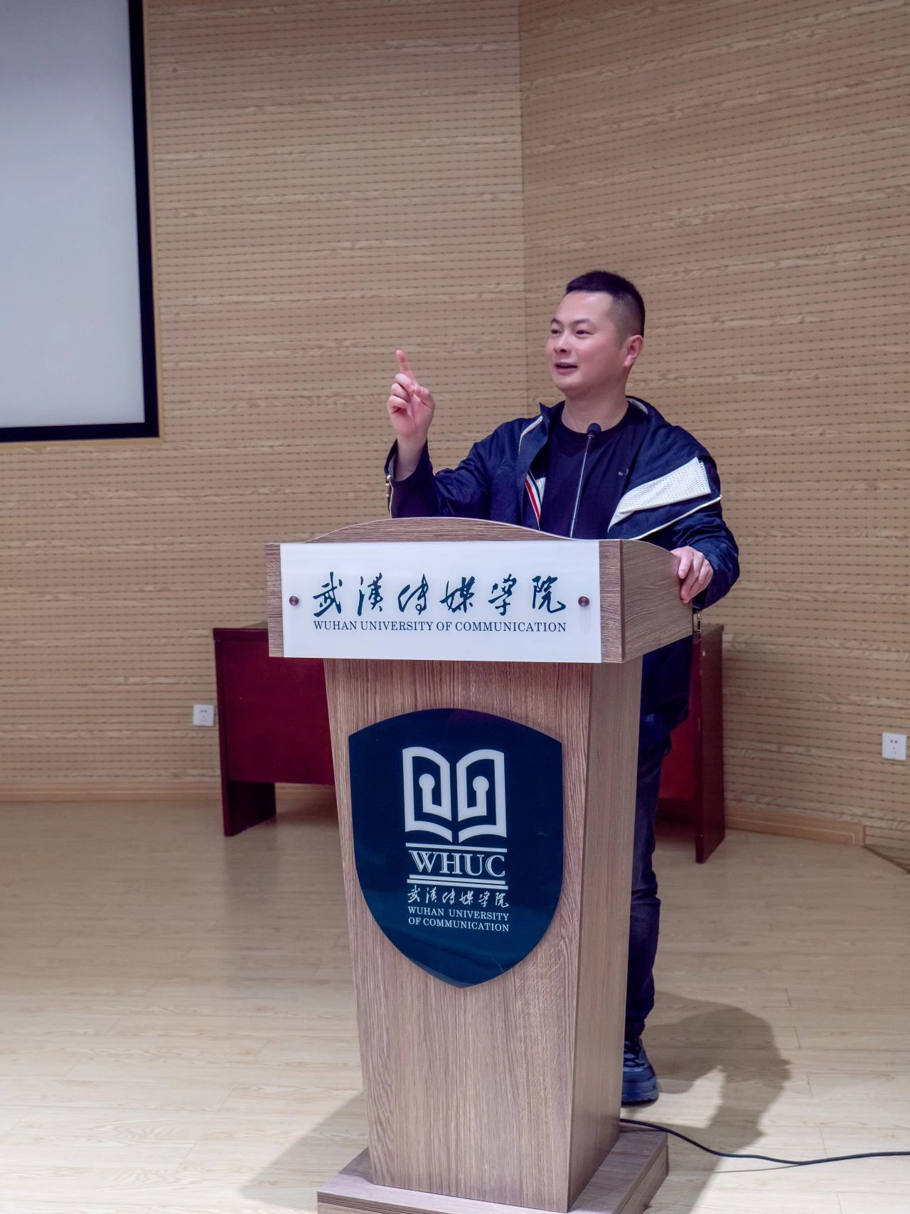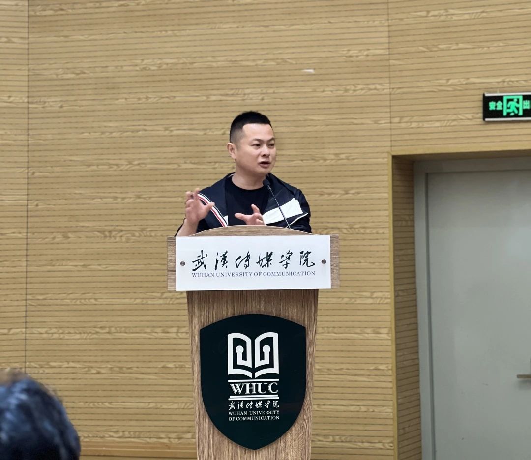 吴健先生从什么是曲艺、曲艺的本质特征、曲艺的艺术特征、曲艺类别、湖北曲艺介绍、湖北曲艺代表曲种、湖北曲艺继承与发展七个角度展开本次讲解。“传媒公司开讲堂,曲艺音乐来捧场,艺术相通来融合,学好本领传四方”是吴健先生为传媒学子送上的第一句话,他通过普通话、汉口话、黄陂话三种口语讲出来,让在场同学切身体会到了曲艺语言的重要性。曲艺作为一门表演艺术,是用“口语说唱”来叙述故事、塑造人物、表达思想感情并反映社会生活的,正如戏曲艺术的本质特点是“以歌舞演故事”,曲艺艺术的本质特征当是以“口语说唱故事”。这是曲艺有别于其他艺术门类的本质属性。因为主要的艺术手段是“口语说唱”,所以曲艺的艺术形式相对地比较简单:由一人或几人说演;或者由一人或几人演唱,辅以小型乐队(往往是三、五件乐器)伴奏。又因为是以口头语言进行说唱,所以其表演方式是以第三人称的叙述为主,民间以第一人称的模拟代言。