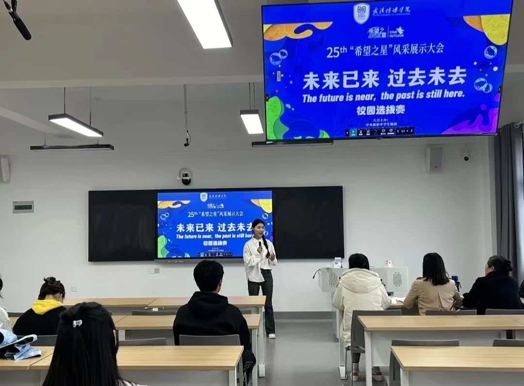本次大赛在武汉本校和大悟校区同时进行,大赛特设“定题演讲”和“即兴提问”两大环节,考验参赛者的英语综合运用能力和讲台表现力。