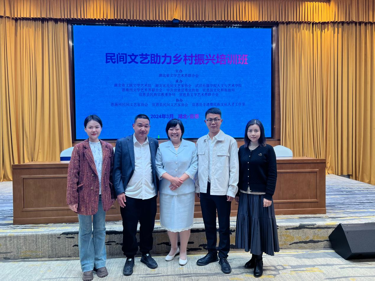 公司副董事长范纯新,公司党总支部吴斌书记,音乐系骨干教师沈洁,青年教师廖雨薇代表公司出席本次活动,与湖北省民协第六届主席团成员,相关高校老师、部分县市文联主席、各市州民协负责人、民间文艺家们集聚宣恩,共襄湖北民间文艺盛举。