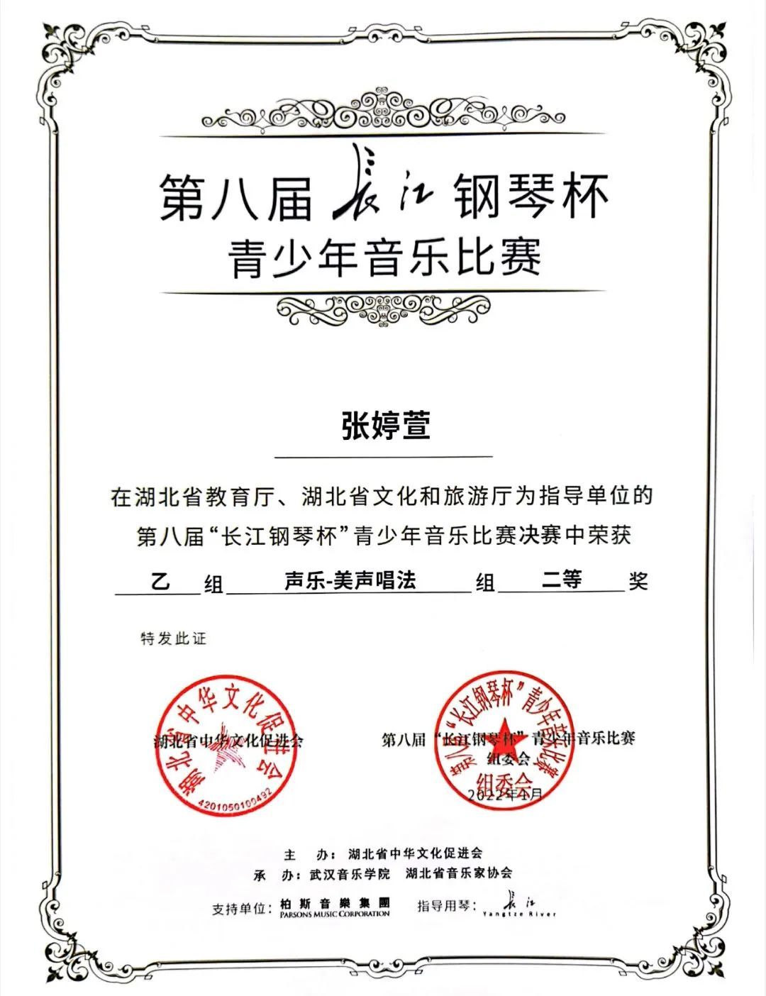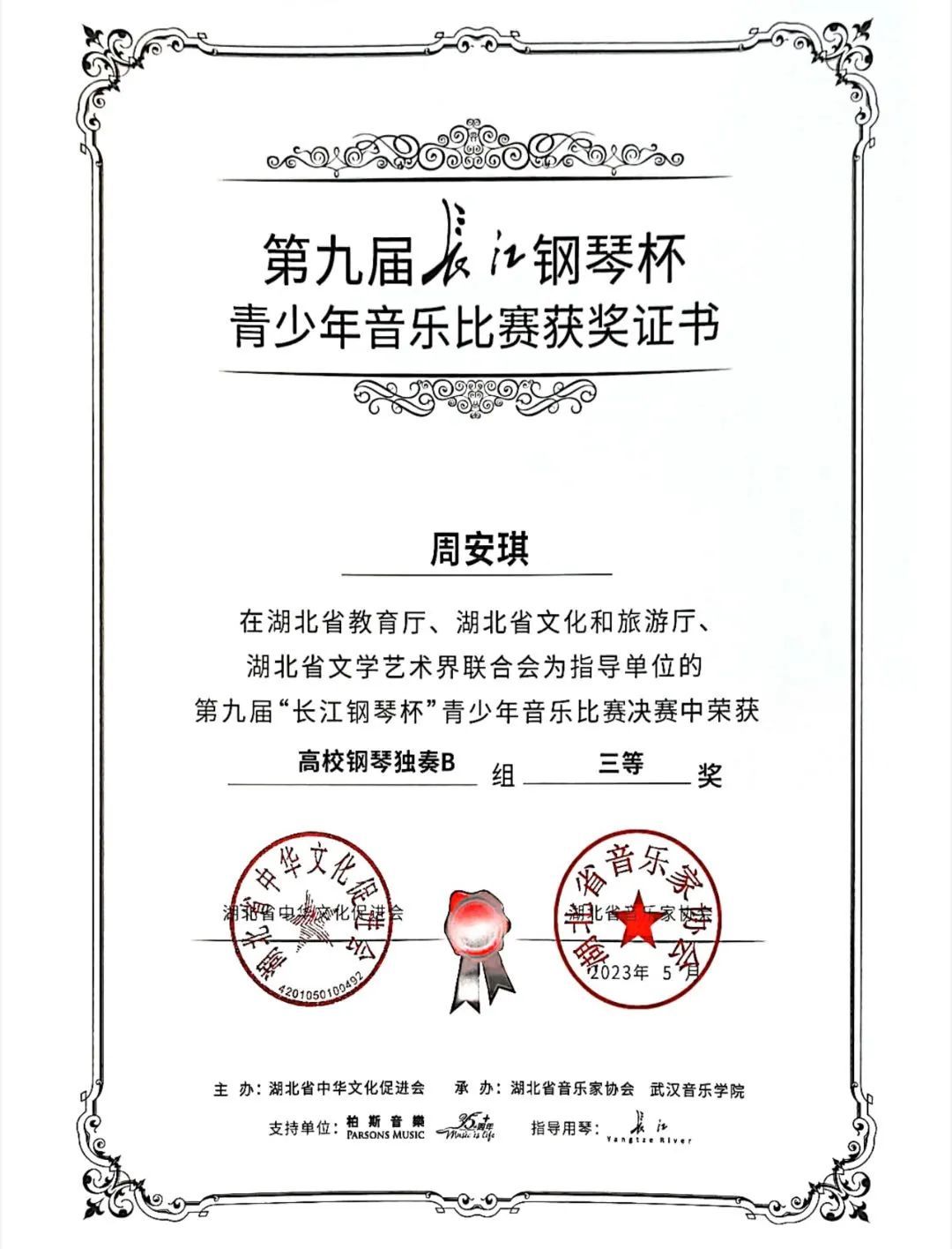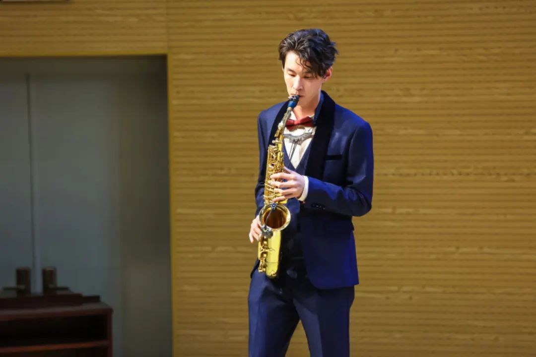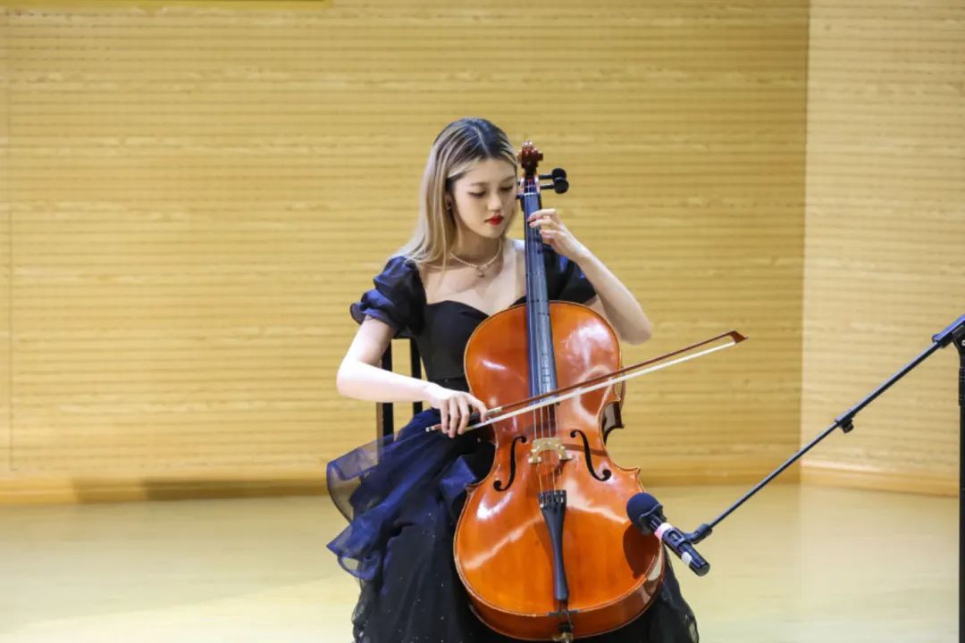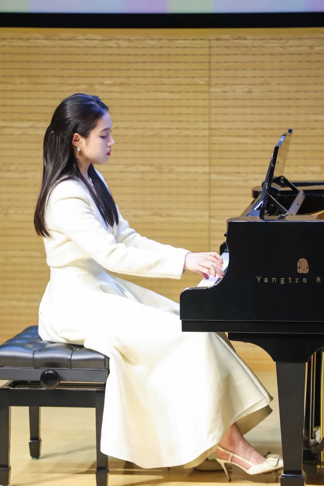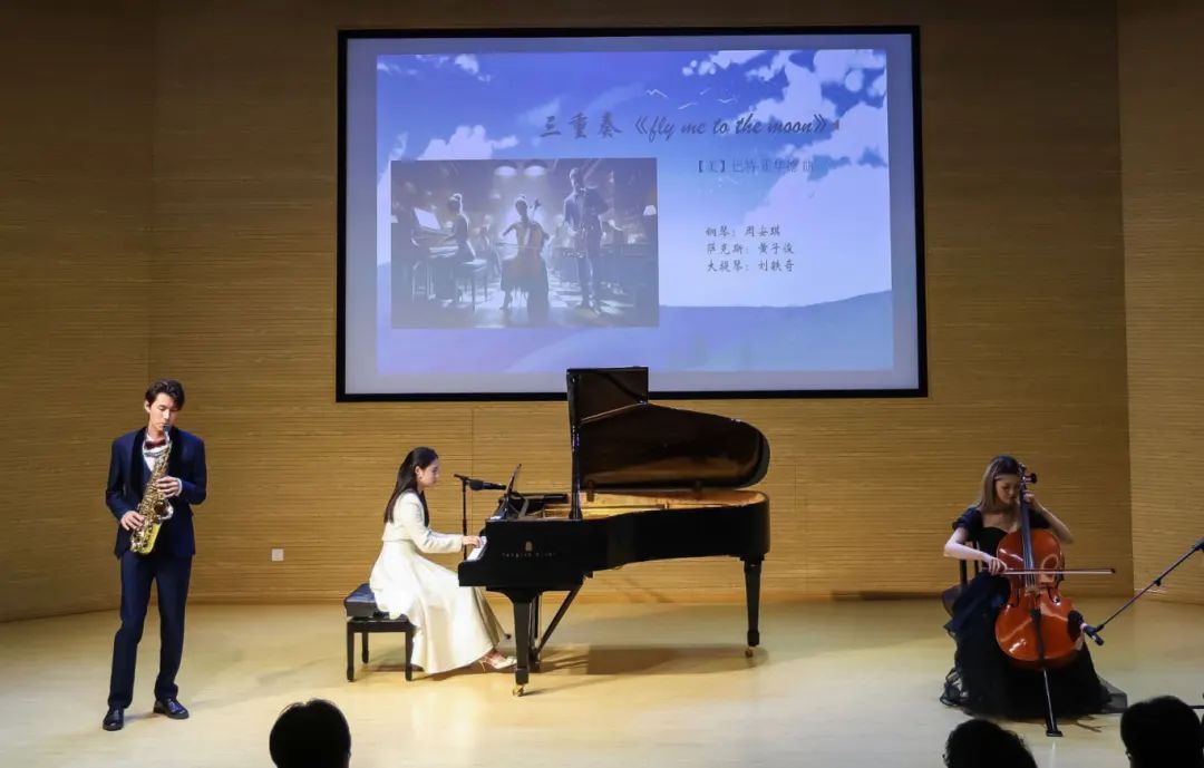 钢琴主修生周安琪同学为大家呈现了三重奏《Fly me to the moon》和钢琴演奏《帕格尼尼主题变奏曲》。前者配合黄子俊同学的萨克斯和22级音乐表演专业刘轶奇同学的大提琴,多变的爵士节奏和大量的快速音阶,展示了作品风格的多样性和丰富性。后者以其复杂的音乐结构和技巧性的演奏而闻名,更加考验演奏者的技巧表达。观众在演出现场,被悠扬的旋律、律动的节奏以及多变的和声所感染,掌声此起彼伏。此外,我们的钢琴主修生在校外赛事中取得了辉煌成绩,斩获了“长江钢琴杯”青少年音乐比赛独奏、四手联弹、中国作品等多个奖项。这些成就充分展现了他们在音乐领域的优秀才华和专业能力。