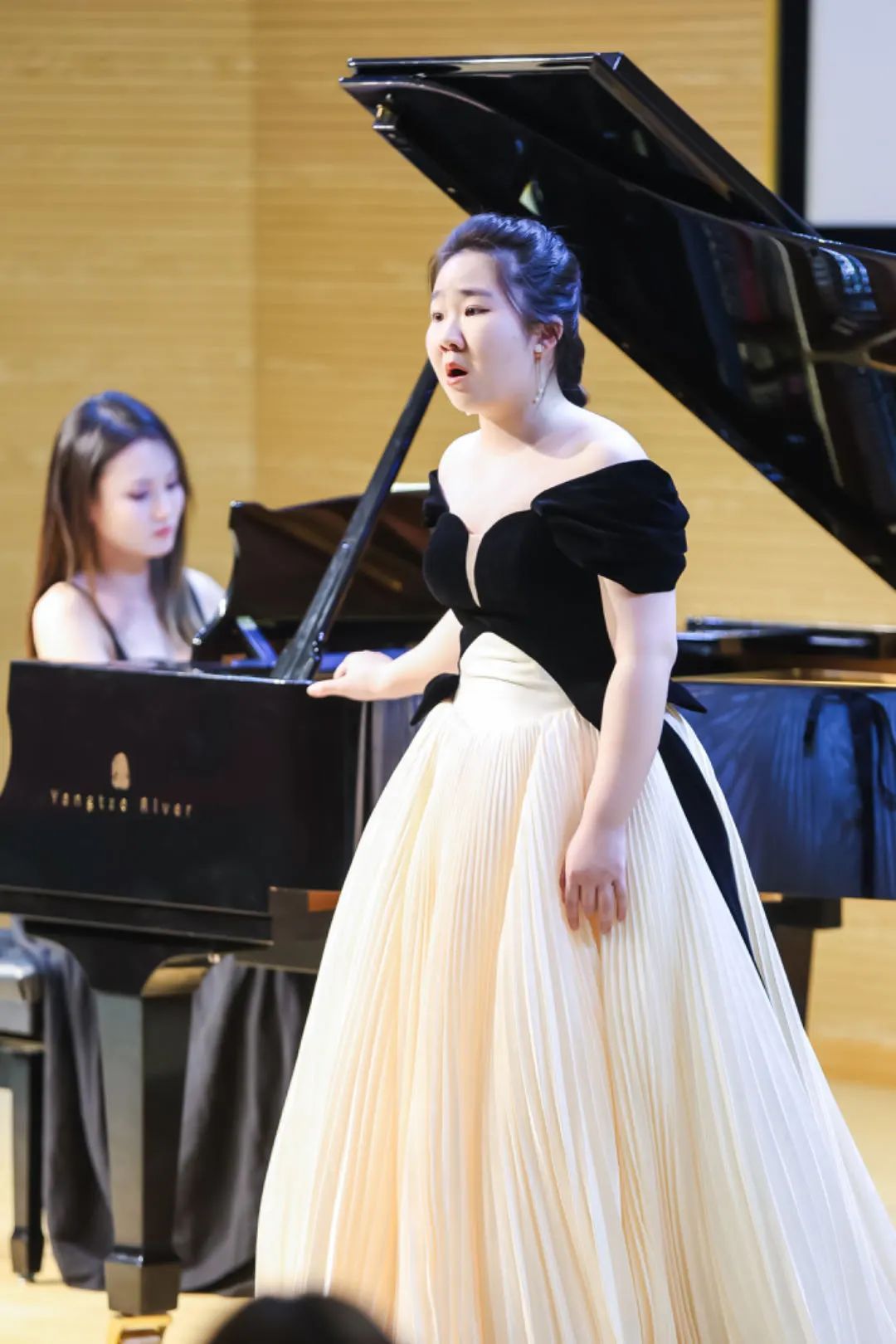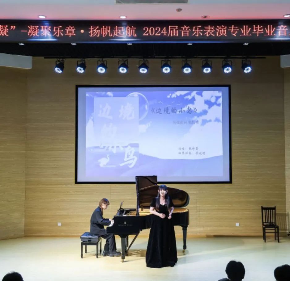 外国歌剧作品注重展现人物内心世界的深度,通过其独特的音乐结构和情感表达方式,将诗人的文学作品转化为动人的音乐形式。作曲家在创作这些作品时,常常深入挖掘主题的内涵,通过旋律、节奏和音色的巧妙运用,展现人物的情感、思想和精神境界,体现出作曲家对高尚艺术追求的向往与追求。而中国声乐歌曲则承载着丰富的文化内涵和情感表达,通过民族的旋律和动人的歌词,传递着民族的情感、历史和精神追求。这些作品不仅反映了民族的文化传承和精神内涵,也展现了作词家和作曲家对传统文化的珍视和赞美。在音乐会上,毕业生们带领观众沉浸在不同的情境中,让观众感受到音乐所带来的力量和情感共鸣。在声乐主修生中,也有不少佼佼者在孔雀杯全国高等院校声乐展演、长江钢琴杯青少年音乐比赛、央音全国青少年展演等大赛中获得优异成绩。