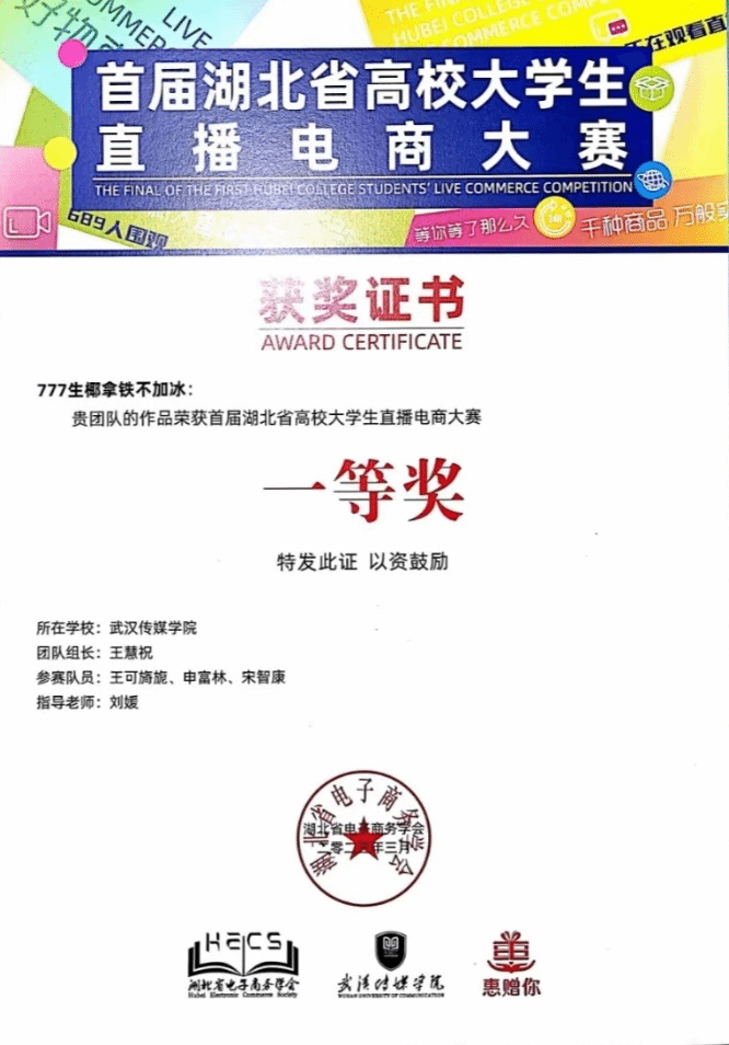 近日,由湖北省电子商务学会主办,公司承办的首届湖北省高校老员工直播电商大赛决赛圆满落幕。经过激烈角逐,公司英语B2101班王慧祝、王可旖旎、申富林、宋智康四位同学组成的“777生椰拿铁不加冰”团队(指导老师:刘媛),凭借精湛的直播技巧、敏锐的市场洞察力和出色的团队协作能力,荣获比赛决赛一等奖。而来自公司音乐学和音乐表演的李慧慧、熊亚婷、汪芯蕊、张蔓四位同学组成的“武传筑梦少女”团队(指导老师:刘晓萱)在本次比赛预赛中也获得了二等奖的好成绩。他们的成功,离不开团队成员之间的默契配合和老师的悉心指导,同时也充分展现了公司员工的卓越才华和独特的魅力。