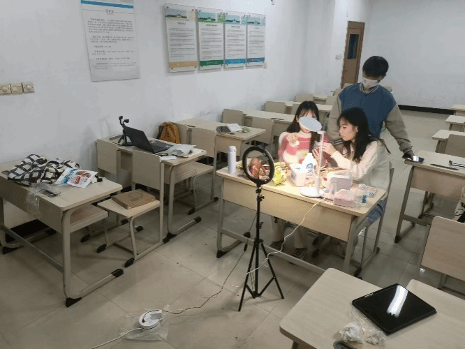 在比赛中,王慧祝、王可旖旎、申富林、宋智康四位同学充分展现了自己的直播技巧和电商运营能力,精心策划的商品搭配、生动的口播、娴熟的互动操作,让观众们感受到了无与伦比的购物体验。同时,他们的聪明才智、敬业精神以及团队合作能力也得到了评委和观众的一致好评。从初期的海报设计宣发到寻找合适的场地以及直播设备,团队中每一位成员都付出了精心的准备和努力,每次直播完,团队成员都会集中开会复盘上一场直播过程中出现的问题,总结经验教训,并在下一次直播时加以改进,提升自身直播技术水平的同时也为不断努力给观众们带去最好的荧幕体验。直播高峰时,观众总数达435人,获6.6万次点赞喝彩。