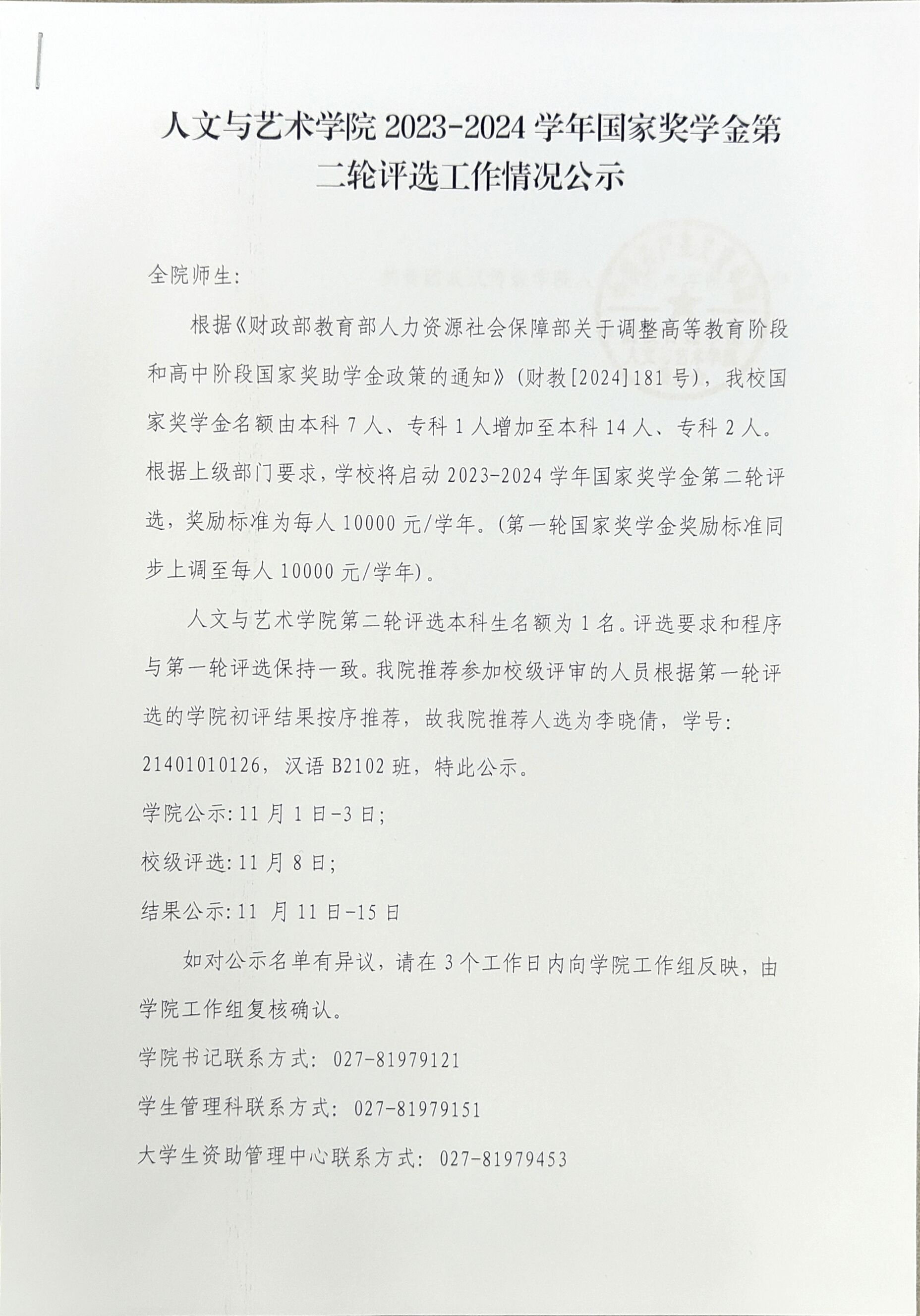 球王会2023-2024学年国家奖学金第二轮评选工作情况公示