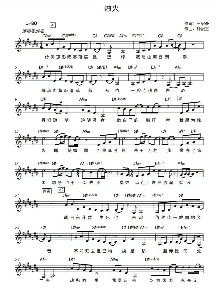 《烛⽕》是⼀⾸融合了流⾏元素、⺠乐⻛格、艺术歌曲于⼀体的歌曲。该作品中国味⼗⾜,跌宕起伏。