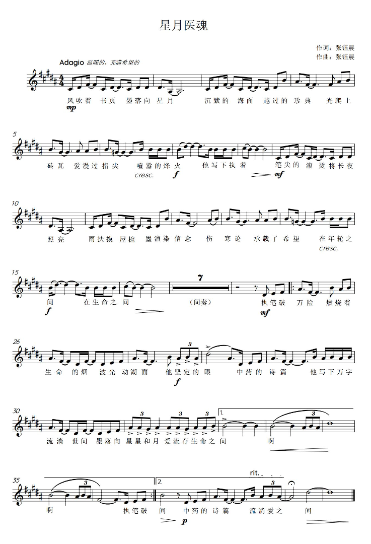 《星月医魂》这首作品是一首以东汉末年的杰出医学家张仲景为主要线索而创作的歌曲,歌名中的“医魂”所指的是中医的精神内核,而“星月”代表了日月更替,象征中医药精神源远流长。作品整体表达了张仲景的坚韧、勇气与深深的仁爱之情,同时也彰显了这种精神如何使中医药的智慧历久弥新,流传至今。
