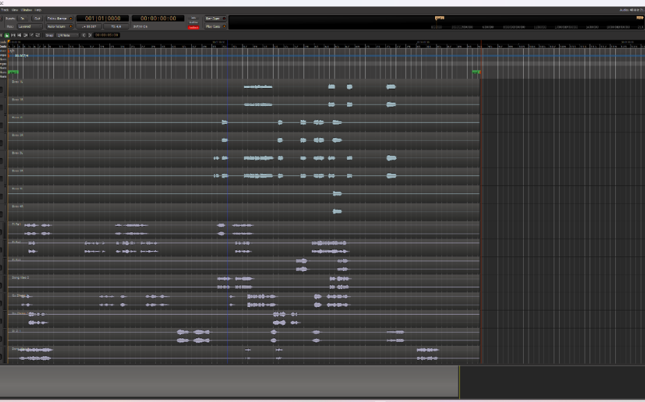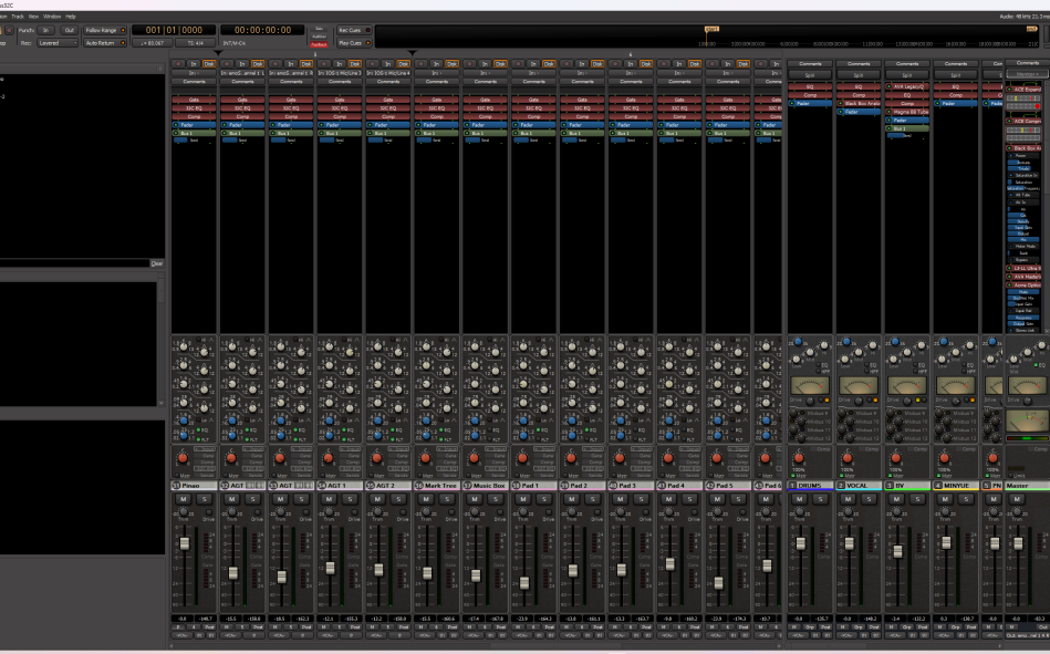 今年2月拿到《烛⽕》这⾸曲⼦进⾏混⾳初期,先对整⾸歌曲进⾏整体轨道分析,可以发现乐器轨道⾮常丰富,主要有两个⿎组:架⼦⿎和定⾳⿎。其他⾳轨还有bass、钢琴、吉他、提琴组、古筝、琵琶、洞箫、笛⼦等。希望突出整⾸乐曲的对⽐度,在副歌段落希望获得较⼤的场⾯感。初混后跟⽼师讨论,7⽉于混音⼯作室完成整体作品的混⾳。