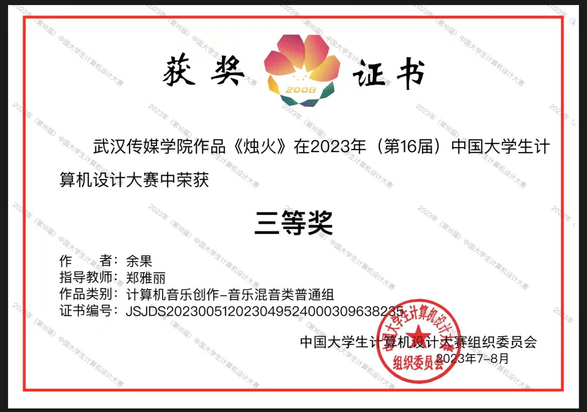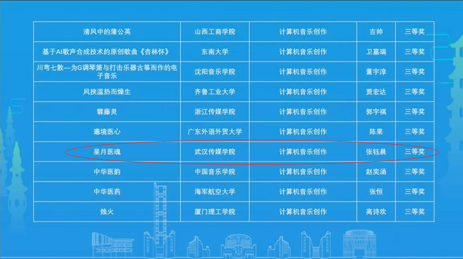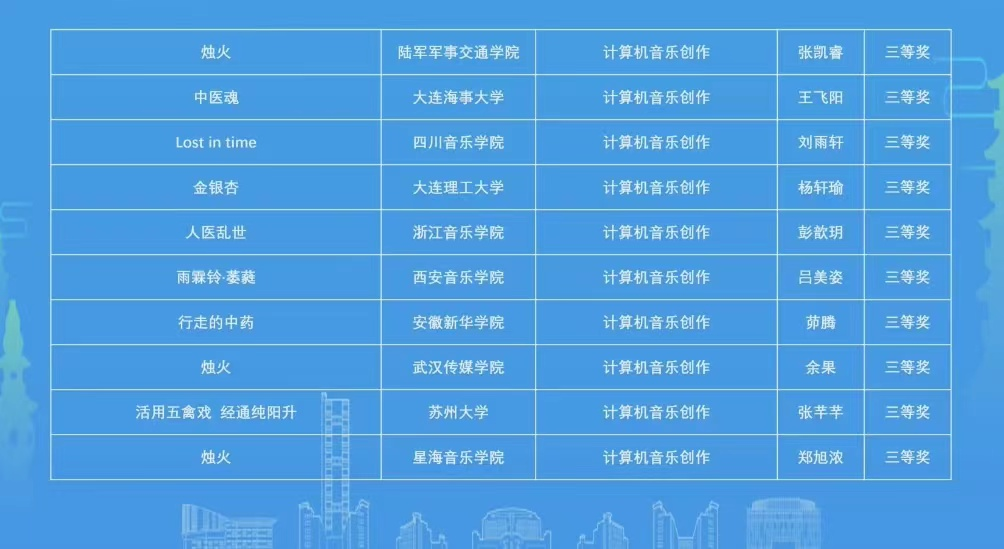 音乐表演专业本着以赛促学、以赛促教、以赛促改的目的,于今年2月至8月间,研究赛道规则,发动教师研讨、积极组织员工参赛。经过员工创作、作品筛选、教师指导、共同修改四个环节,完成了《独火》《百草千年》《循迹》等11首作品的创作和推送。最终获得:国赛,三等奖2项;中南赛区,一等奖2项、二等奖3项、三等奖5项的好成绩。
